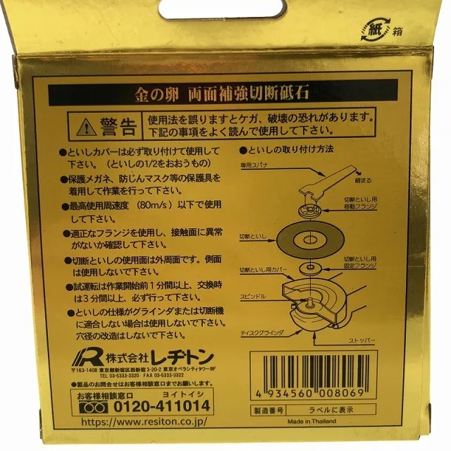 商品名:☆未使用80枚☆RESITON レヂトン ステンレス 金属用 切断砥石 金の卵 AZ60P 105×1.0×15 ディスクグラインダー用 切削砥石 トイシ
