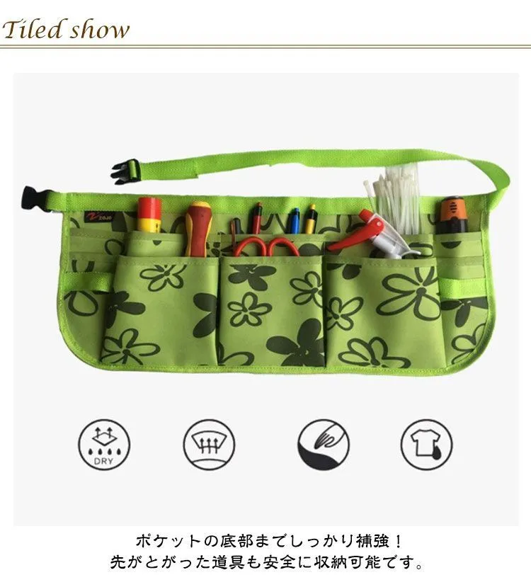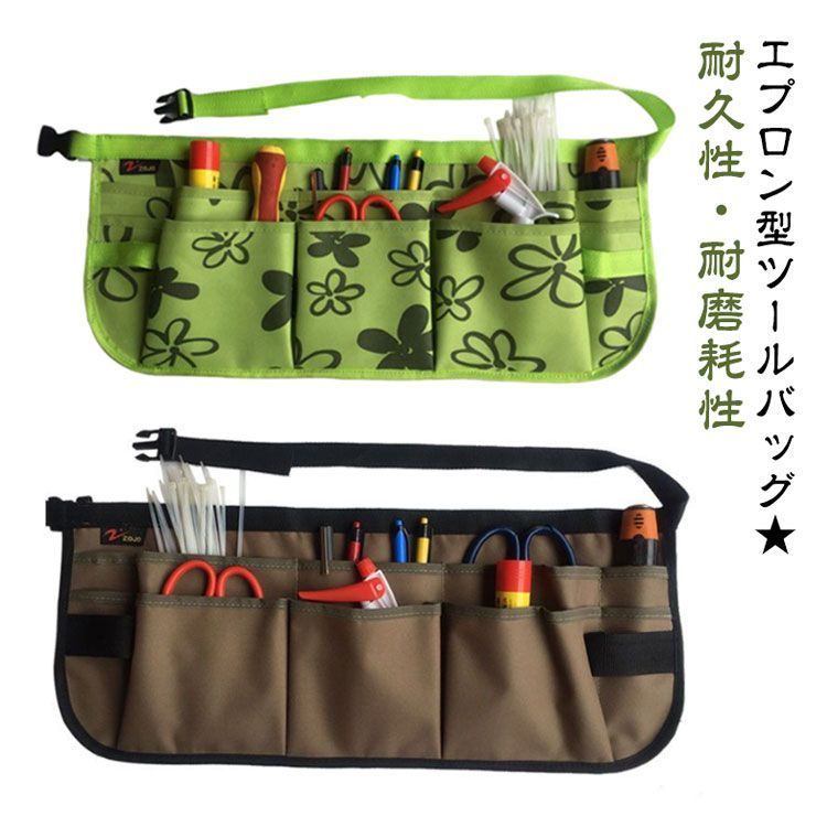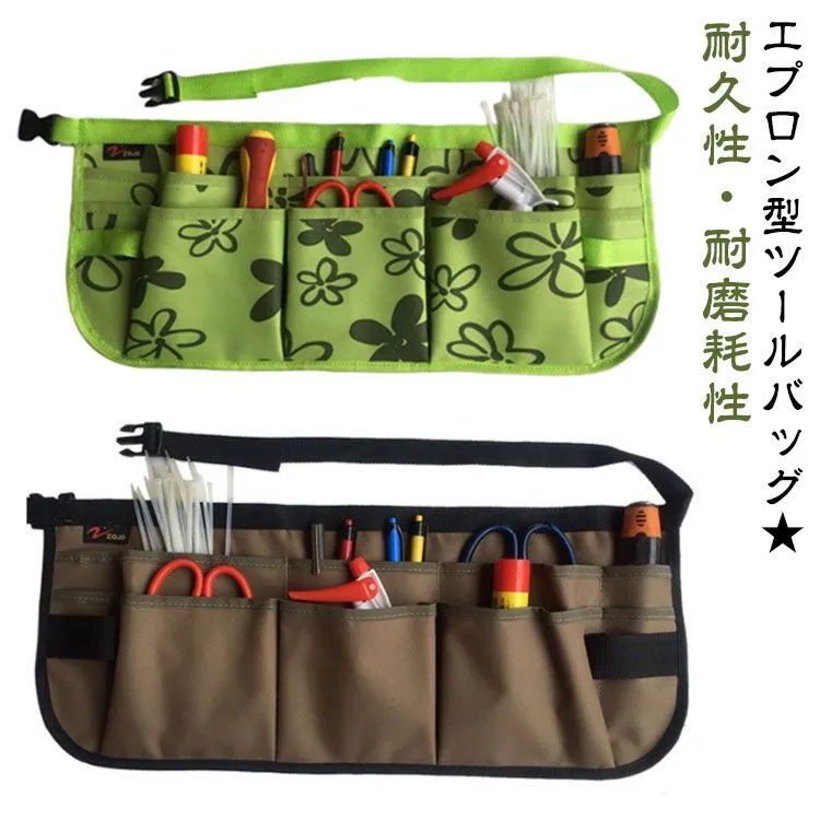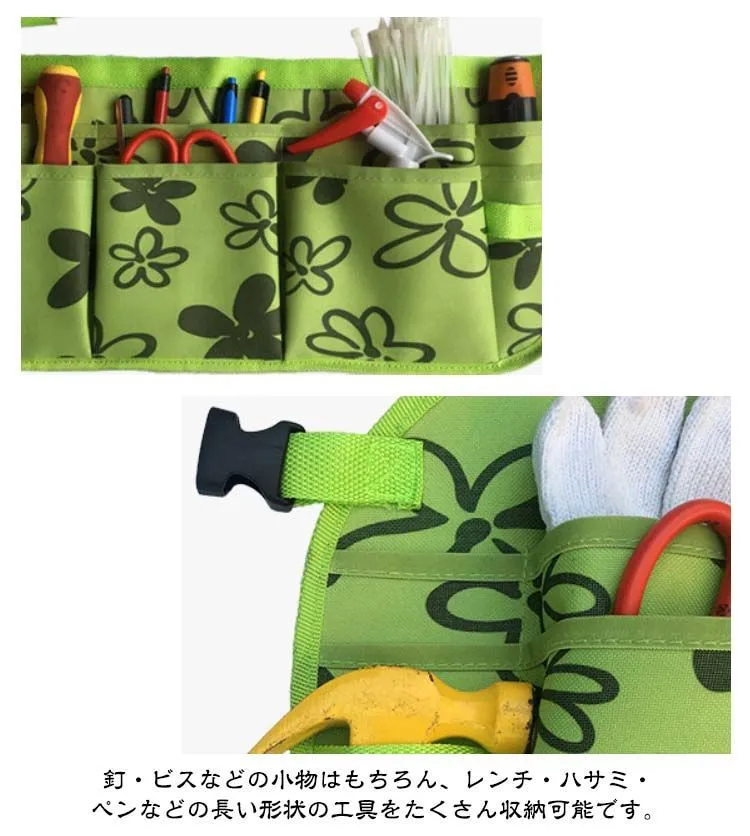 ガーデニングエプロン ガーデニングツールエプロン 作業エプロン 作業用 工具入れ ツールバッグ ポケット 小物入れ 腰袋 前掛け ショート ワンタッチ DIY 農作業 畑仕事 キャンプ 工具