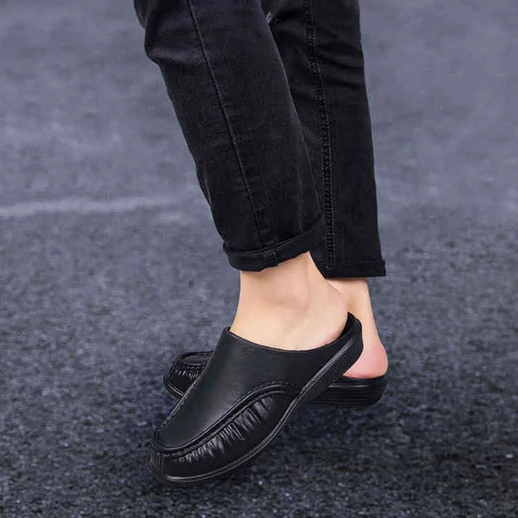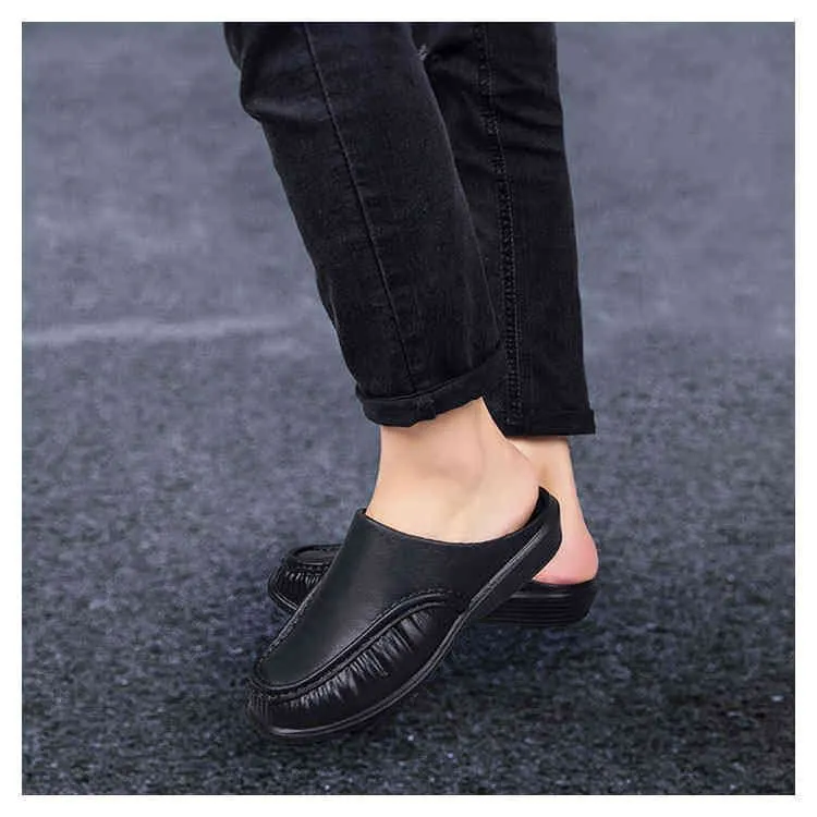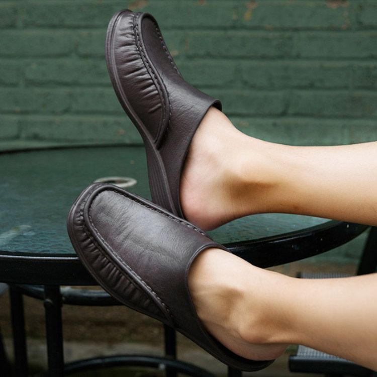 見た目は紳士靴のスタイリッシュなビジネススリッパ。