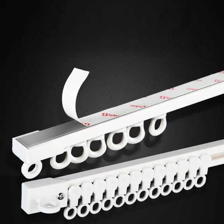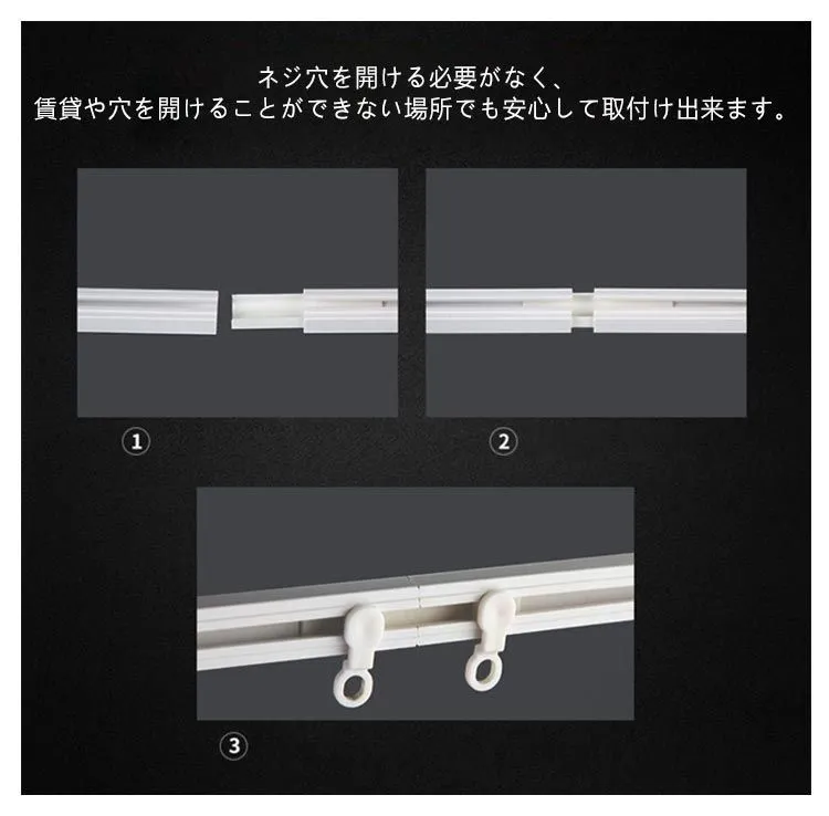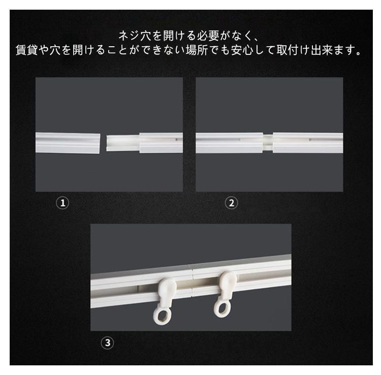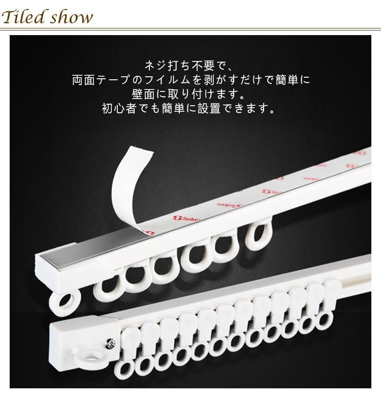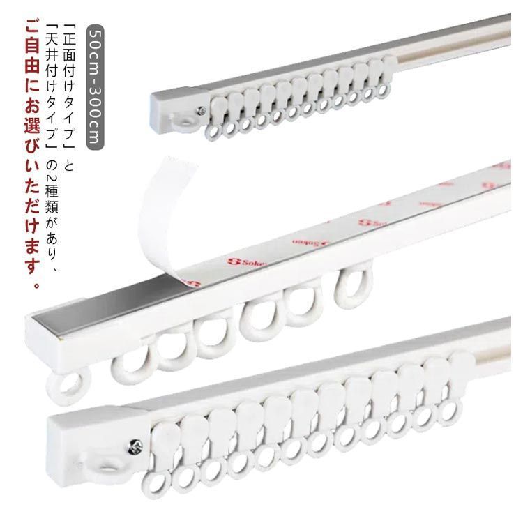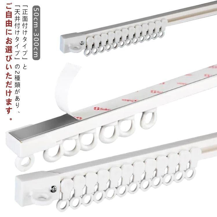カーテンレール 天井付け 正面付け 長さ調整 調節可能 50cm-300cm 静音性 耐荷重5kg 頑丈 取付簡単 粘着式 両面テープ 貼り付け 滑車18個 ランナー キャップ カット自在