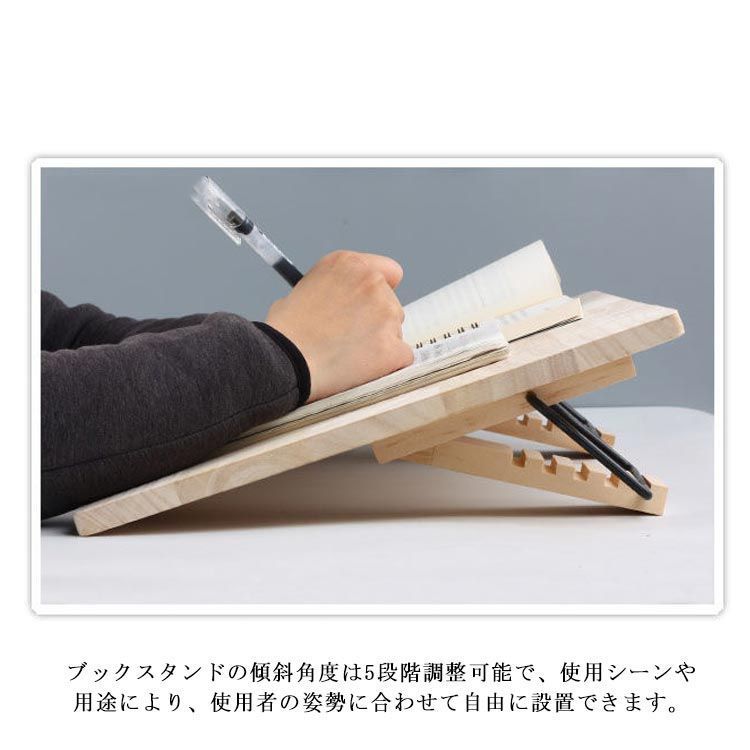 ブックスタンドの傾斜角度は5段階調整可能で、使用シーンや用途により、使用者の姿勢に合わせて自由に設置できます。