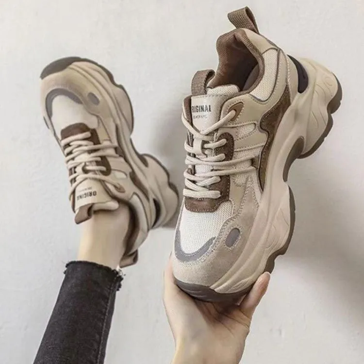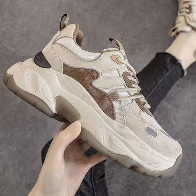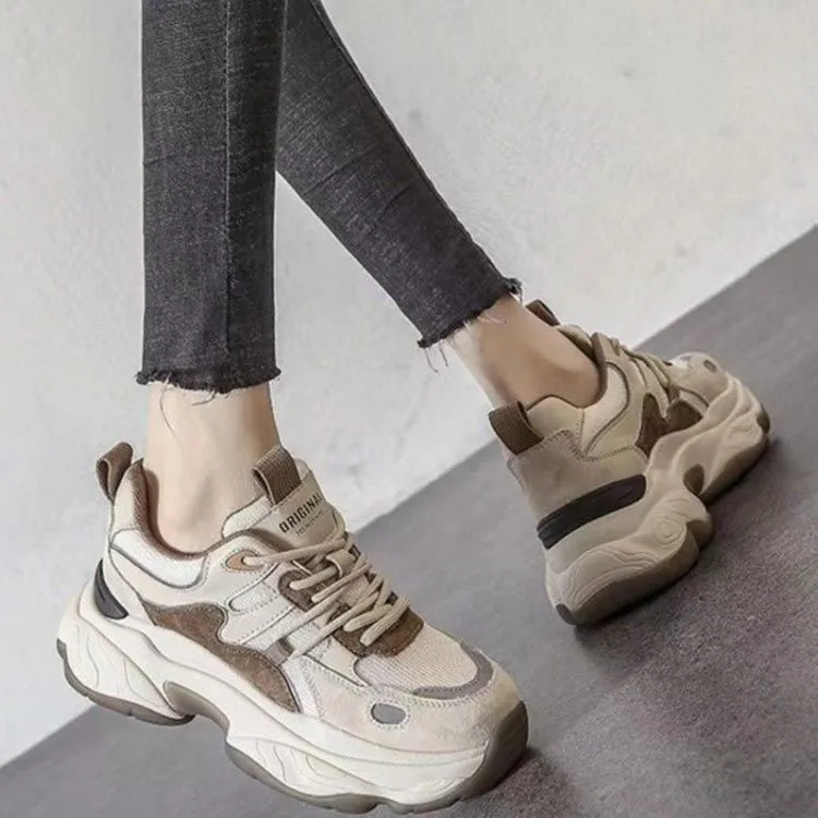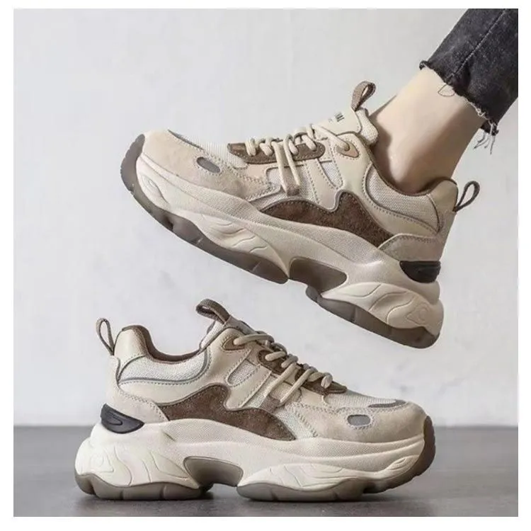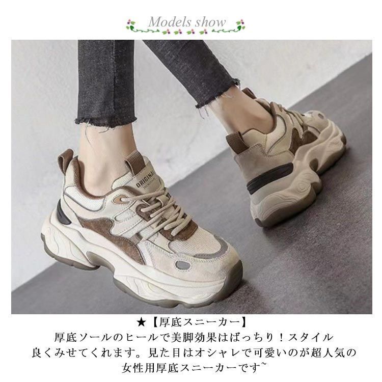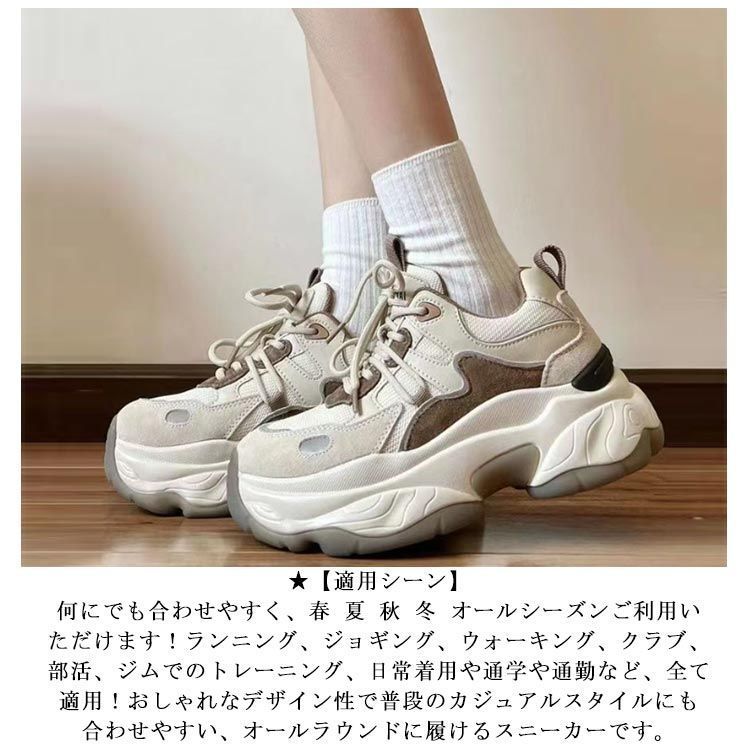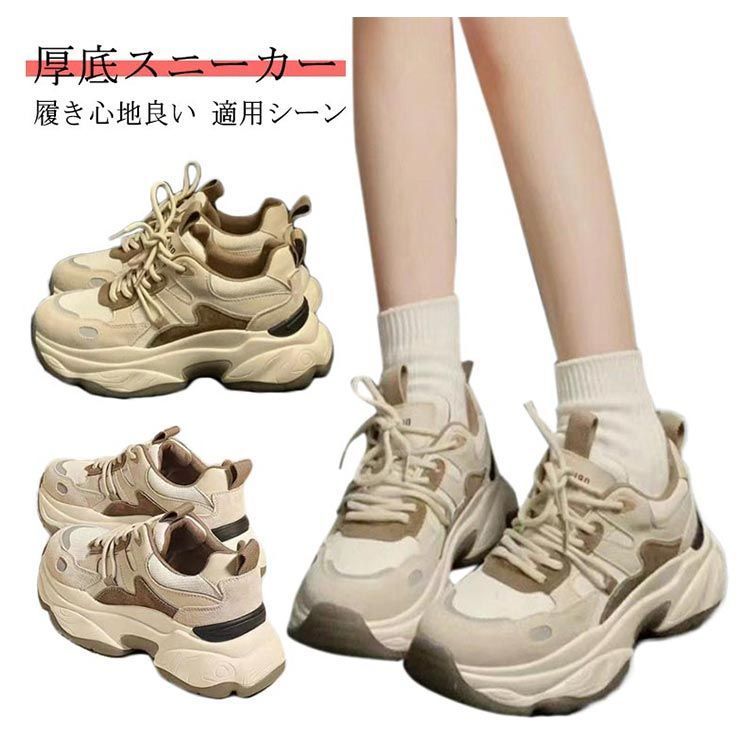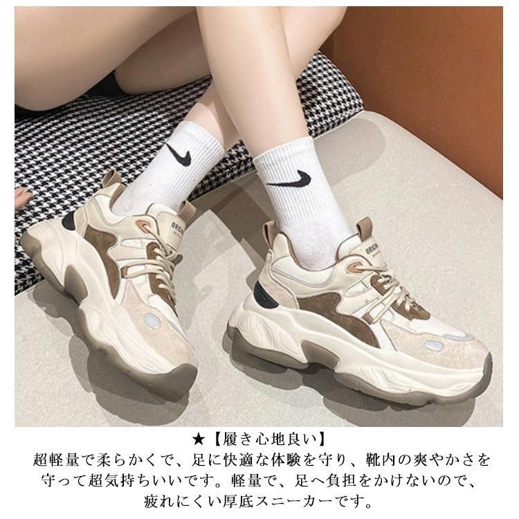 スニーカー レディース 厚底 ダッドスニーカー レースアップ きれいめ 大人 美脚 軽量 歩きやすい 疲れない カジュアル ウォーキングシューズ ランニングシューズ 身長アップ ベージュ ブラウン