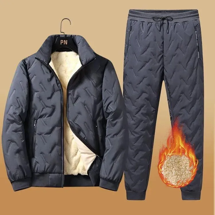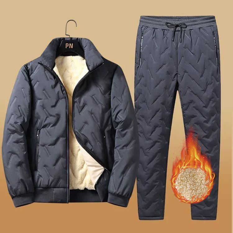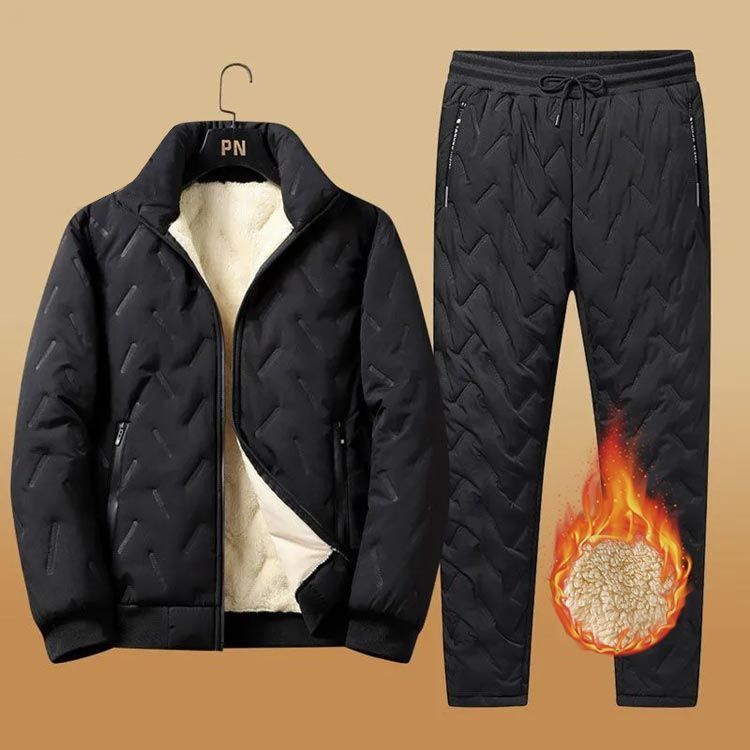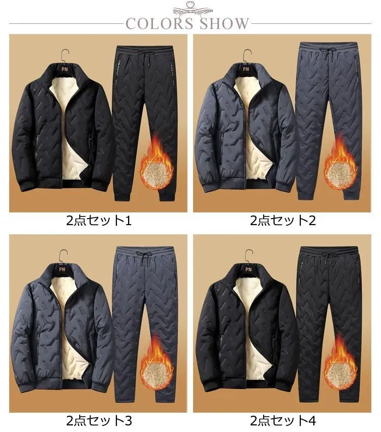 ゴルフウェア メンズ 上下セット 冬 防寒 厚手 中綿ジャケット ジップアップ トレーナー ゴルフパンツ 裏起毛 裏ボア 大きいサイズ