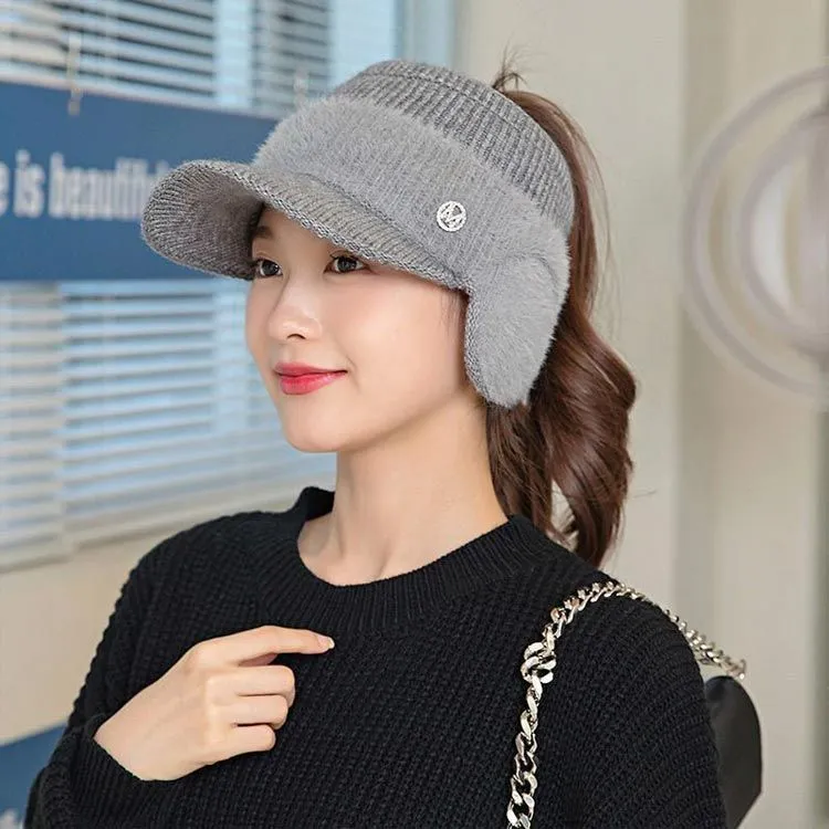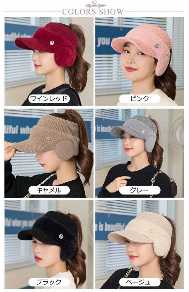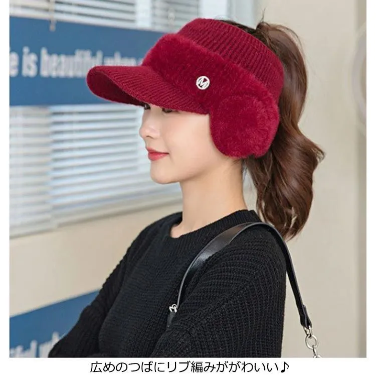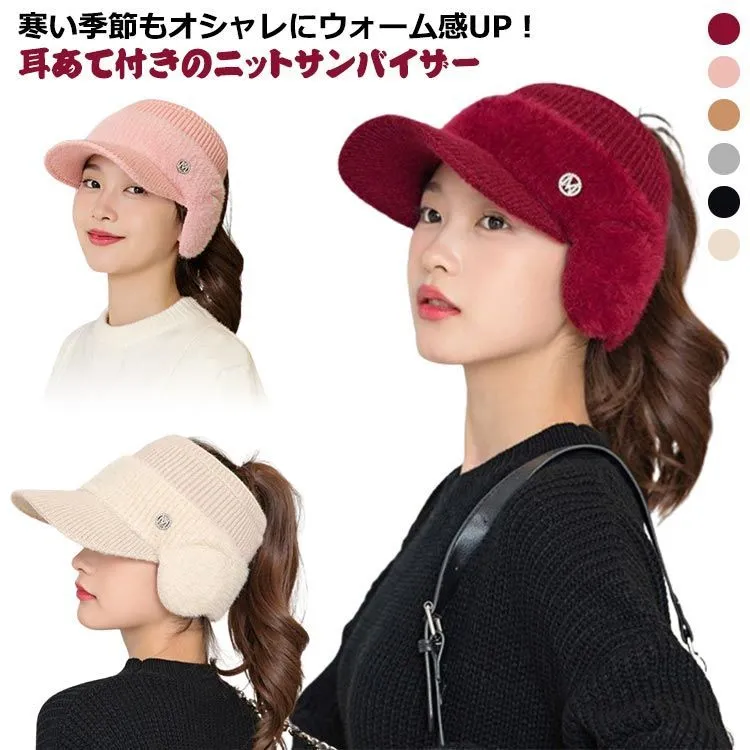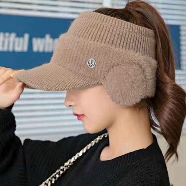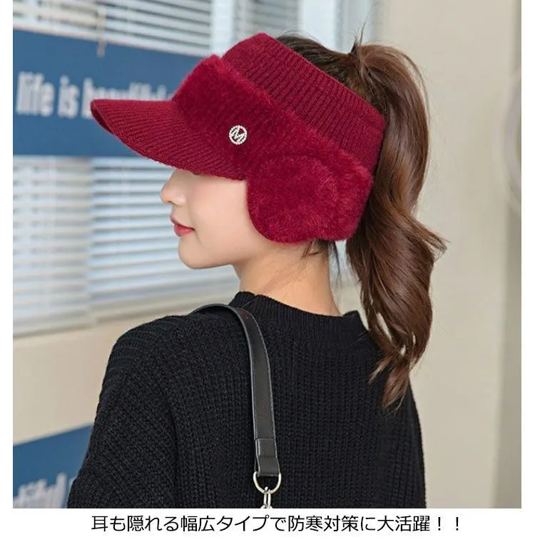 冬 帽子 暖かい レディース スポーツ ニット帽 サイクリング ゴルフ ランニング カジュアル おしゃれ ニットサンバイザー 女性 もこもこ かわいい 小顔効果 きれいめ 耳当て付き 防寒