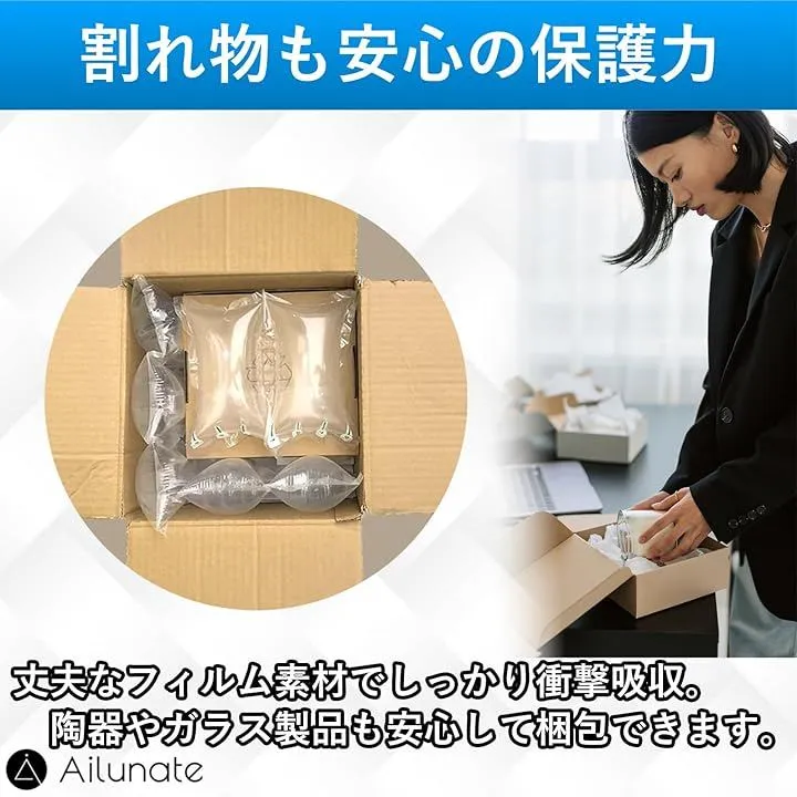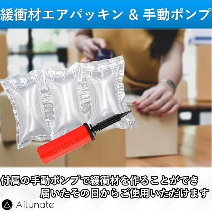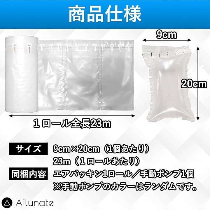 Ailunate エアー緩衝材 エアパッキン 引っ越し エアークッション 引越し ロール すき間埋め 梱包 包装 箱詰め 資材 ハンドポンプ付き (白, 全長23m20cmx9cm)