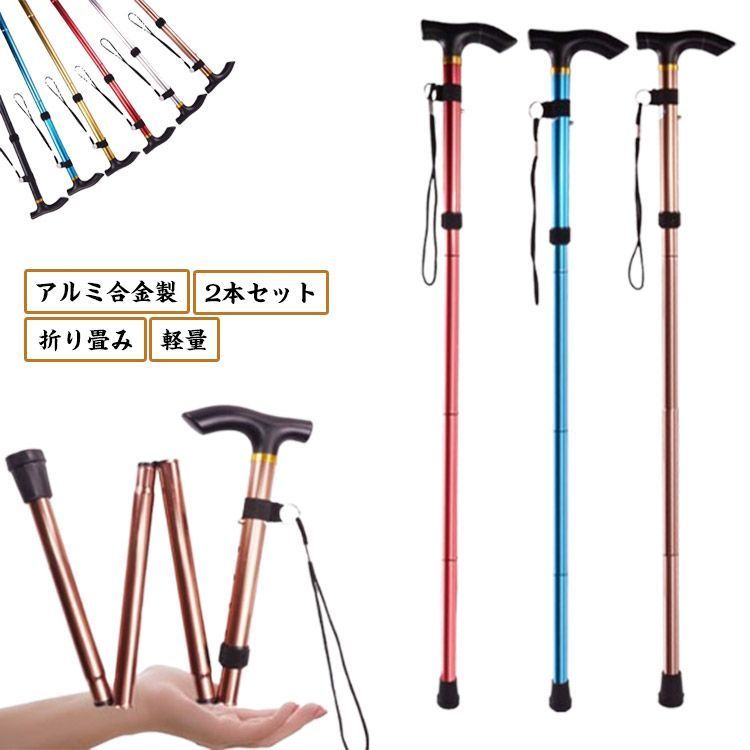 登山杖 ステッキ トレッキングポール 折りたたみ式 アルミ合金製 軽量 調整可能 登山用品 アウトドア ウォーキングポール 2本セット