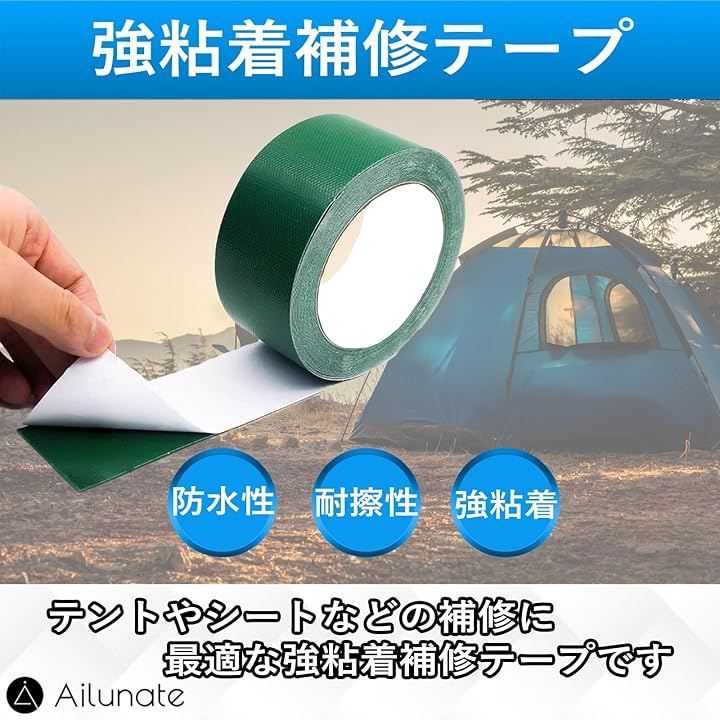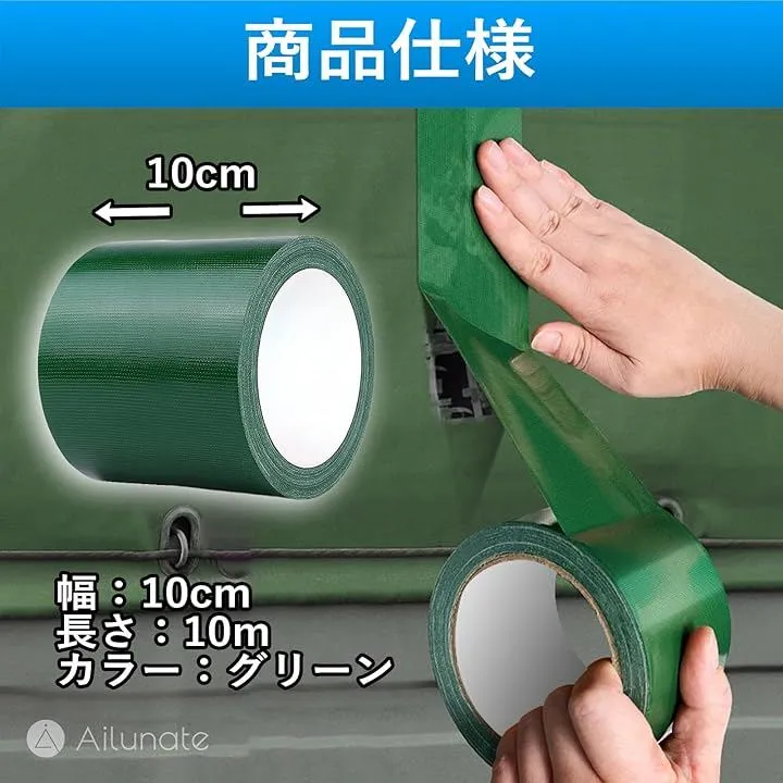 Ailunate 補修テープ 防水 強力 テント タープ 高耐久 漏れ防止 耐候性 ビニールハウス (緑, 幅10cm 長さ10m)