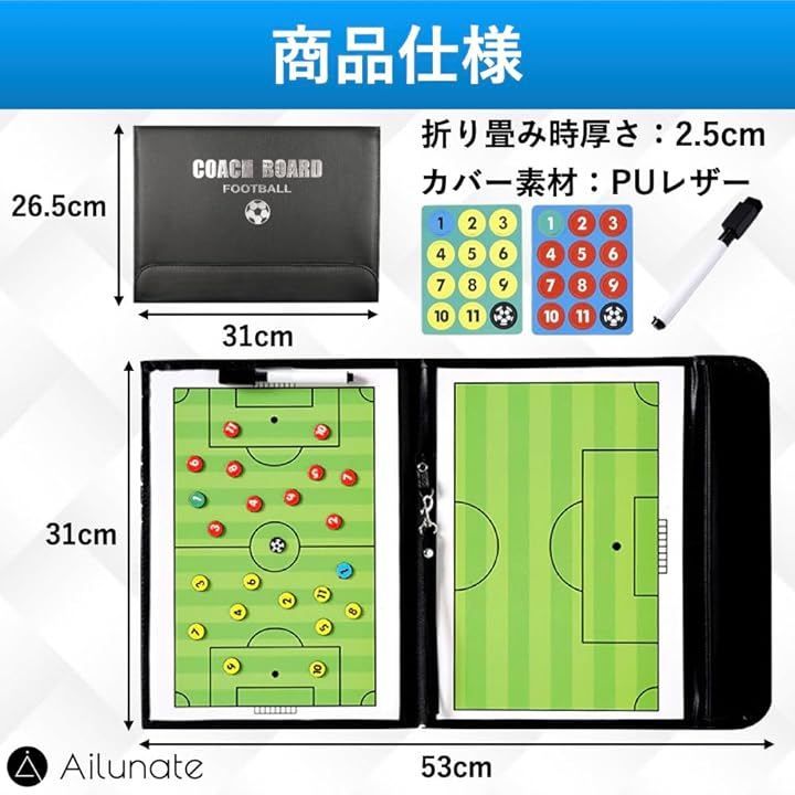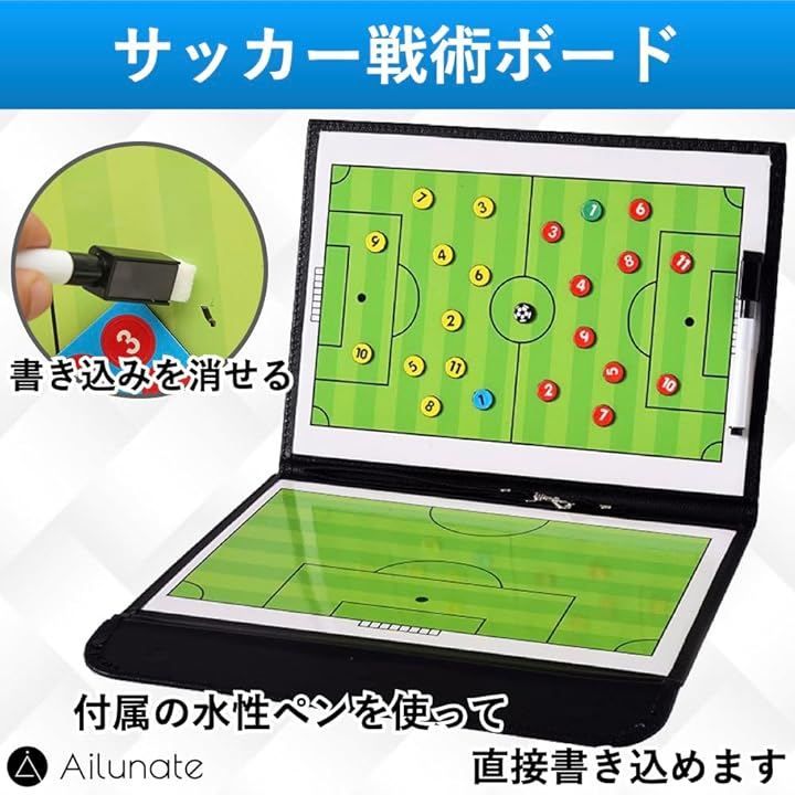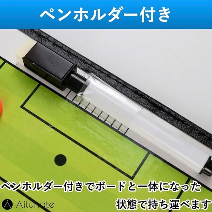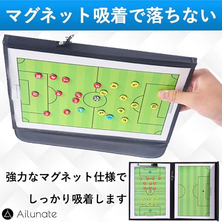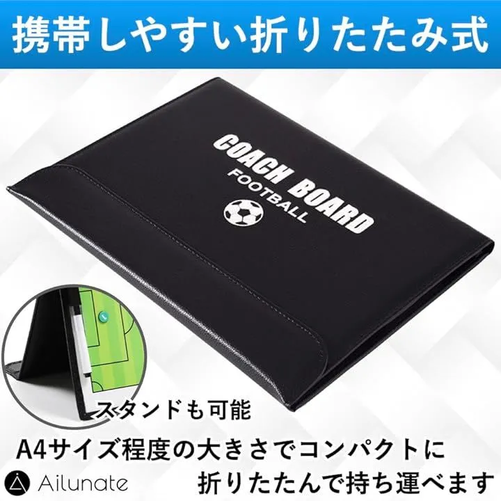 Ailunate サッカーボード 作戦ボード マグネット 作戦盤 作戦板 バインダー 折り畳み コーチング 戦術 戦略 指導 A4 磁石 ペン付き (ブラック)