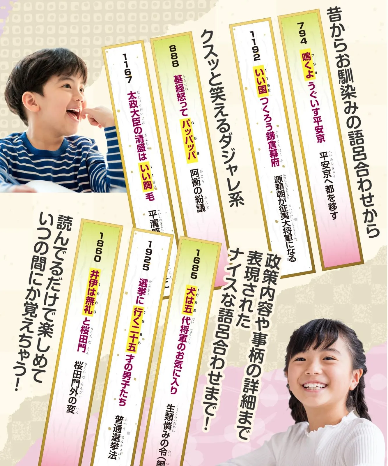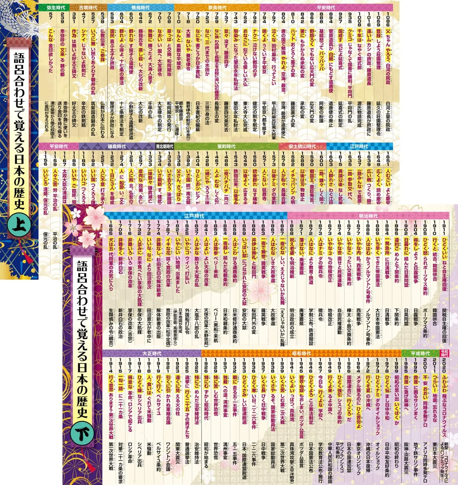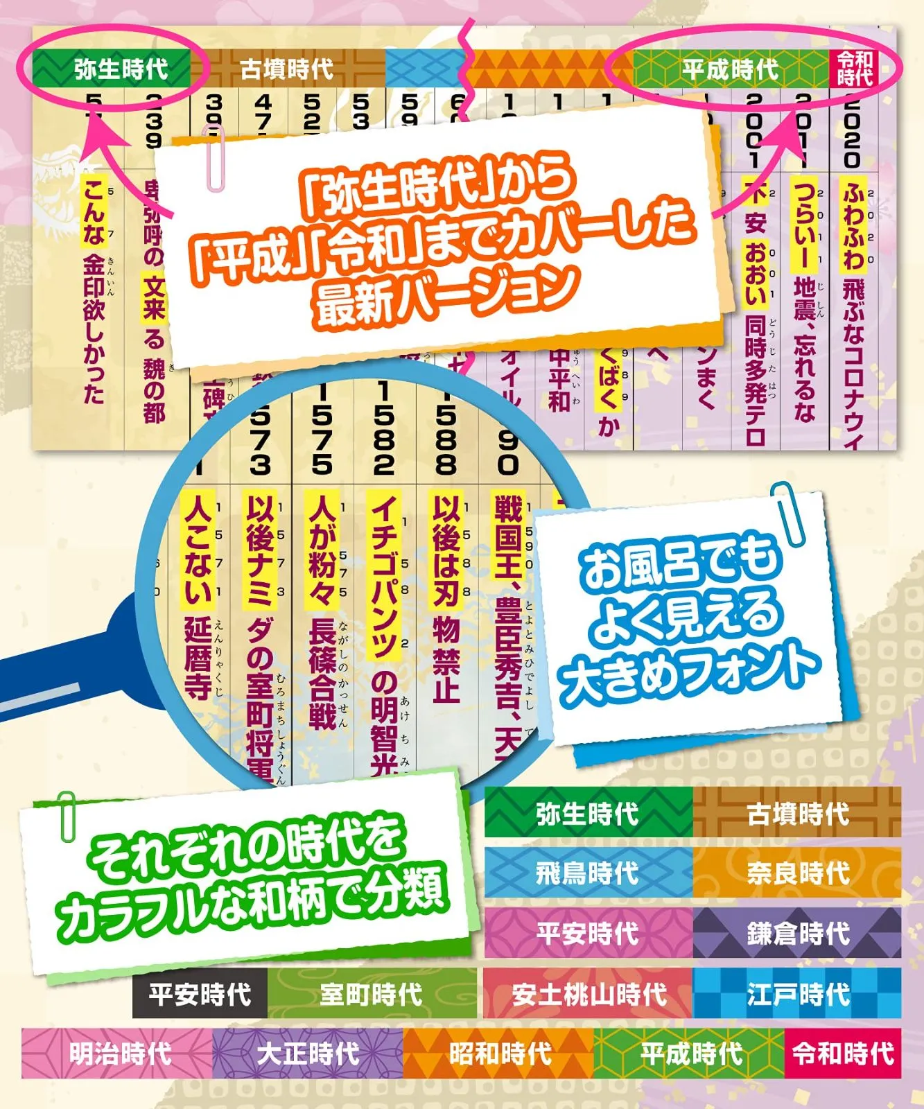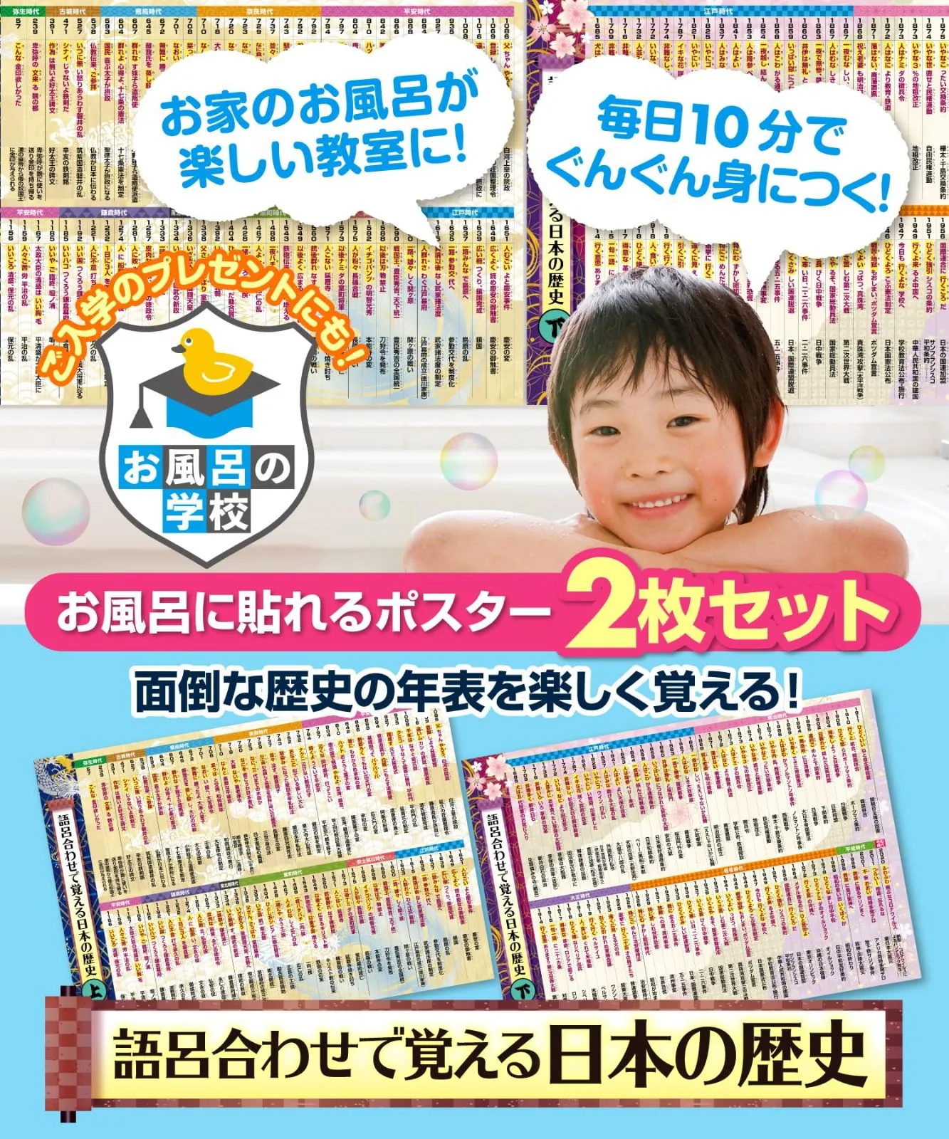 お風呂の学校 語呂合わせで覚える日本史 年表(年号)お風呂ポスター 2枚セット 日本製 和柄デザイン 歴史 社会 中学受験 知育 学習 防水 B3サイズ