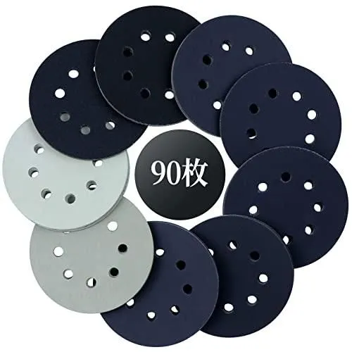 HWXINIE サンディングディスク 125mm 耐水ペーパー セット #240〜5000番 9種類90枚入 ランダムサンダー ペーパー 8穴 丸型 マジック式 サンディングペーパー