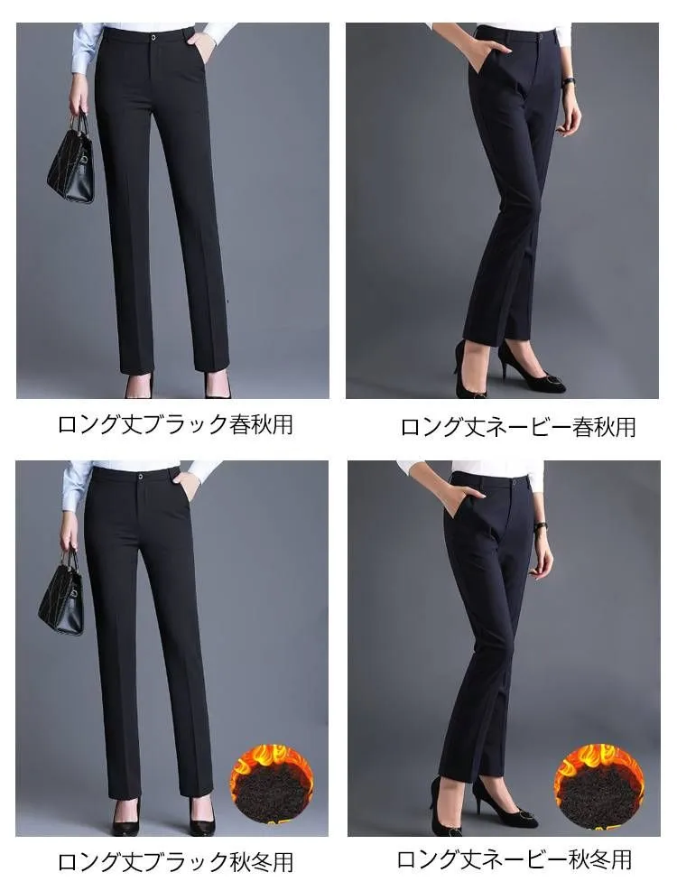 薄手/厚手 事務服 制服 スラックス スリム レディース 夏用 ストレッチパンツ 夏 ストレート ビジネス チノパン ロングパンツ 春 秋 冬 長ズボン 大きいサイズ ストレッチ 伸縮 ビジネスパンツ#eason1523