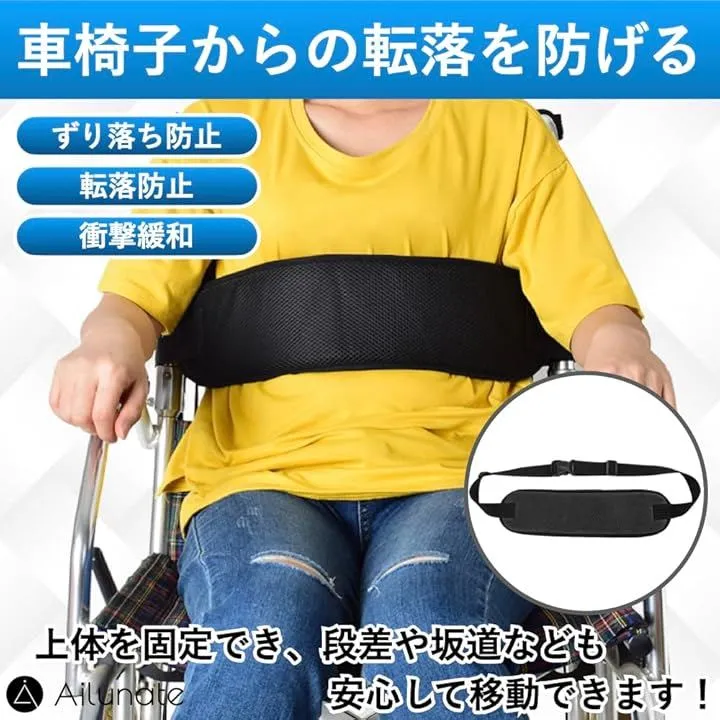 Ailunate 車椅子 固定ベルト 安全ベルト シートベルト 車いす 転落防止 落下防止 滑り止め ずり落ち防止 介護 介助 バンド (ブラック)