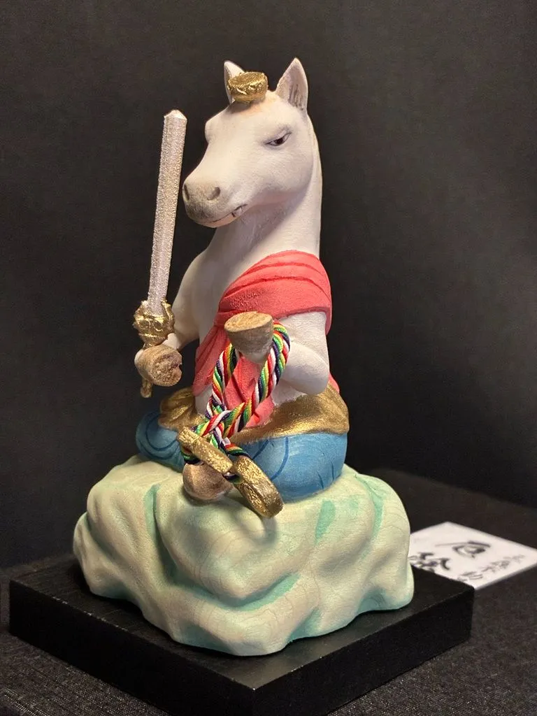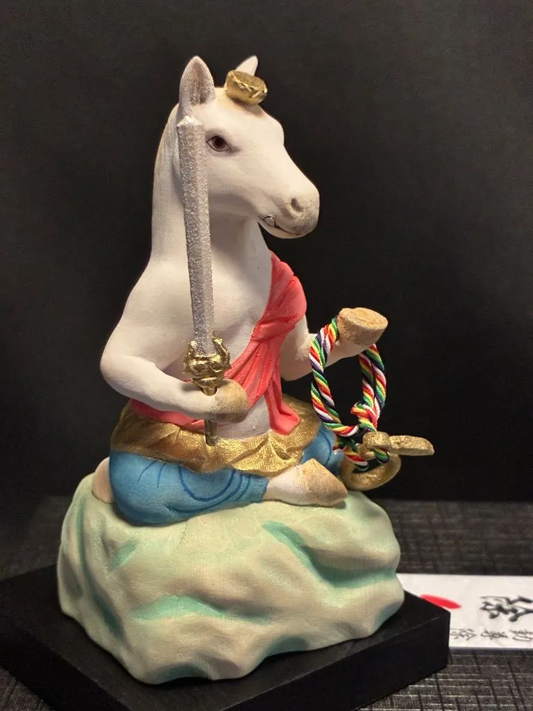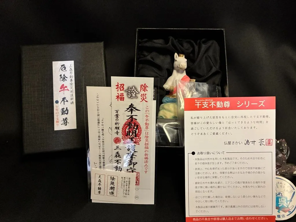 「2026年 厄除/開運/午不動尊/三毳不動尊御祈祷済み/桧製/台座付」仏師 酒井豪作/高さ9.3cm/猫 buddha 干支飾り