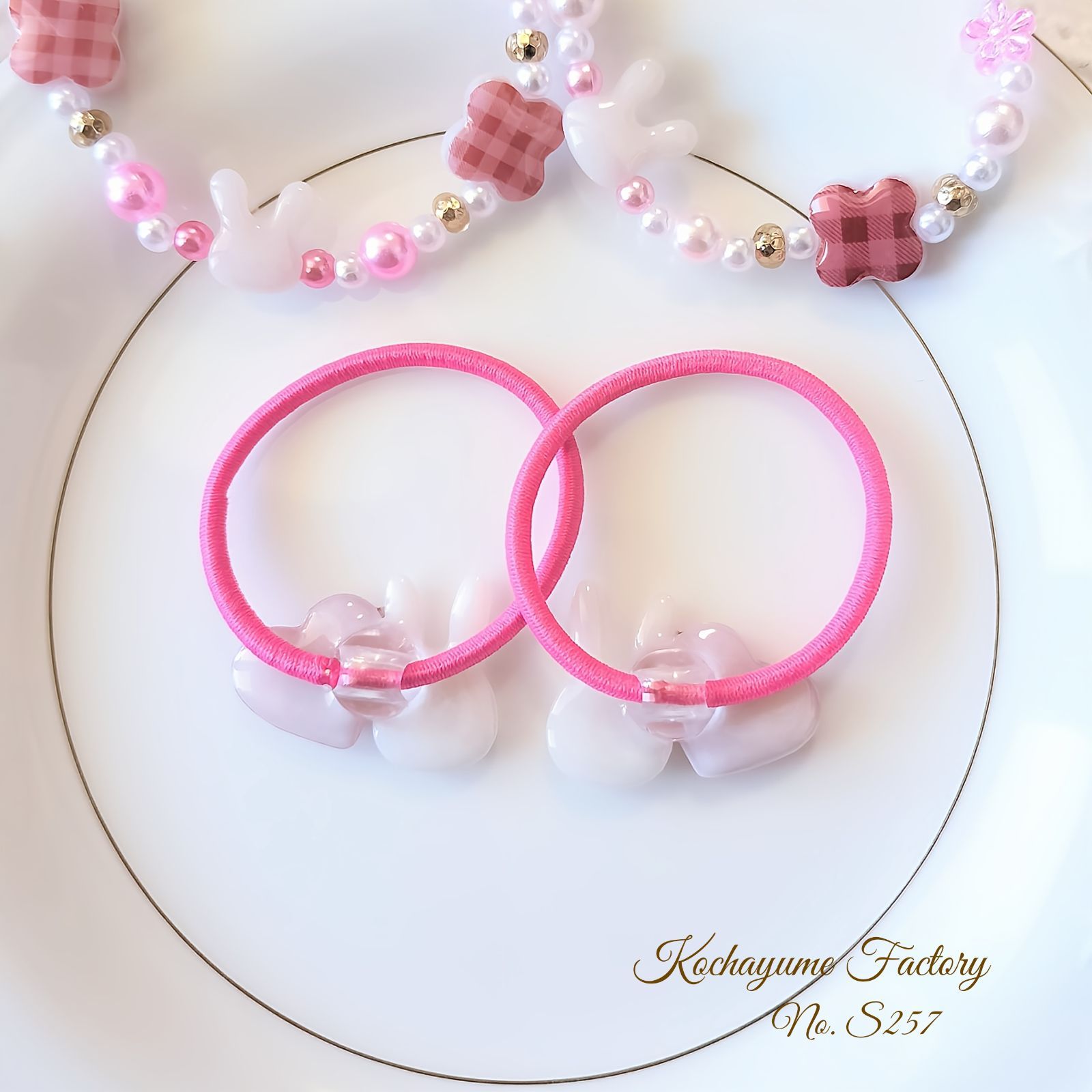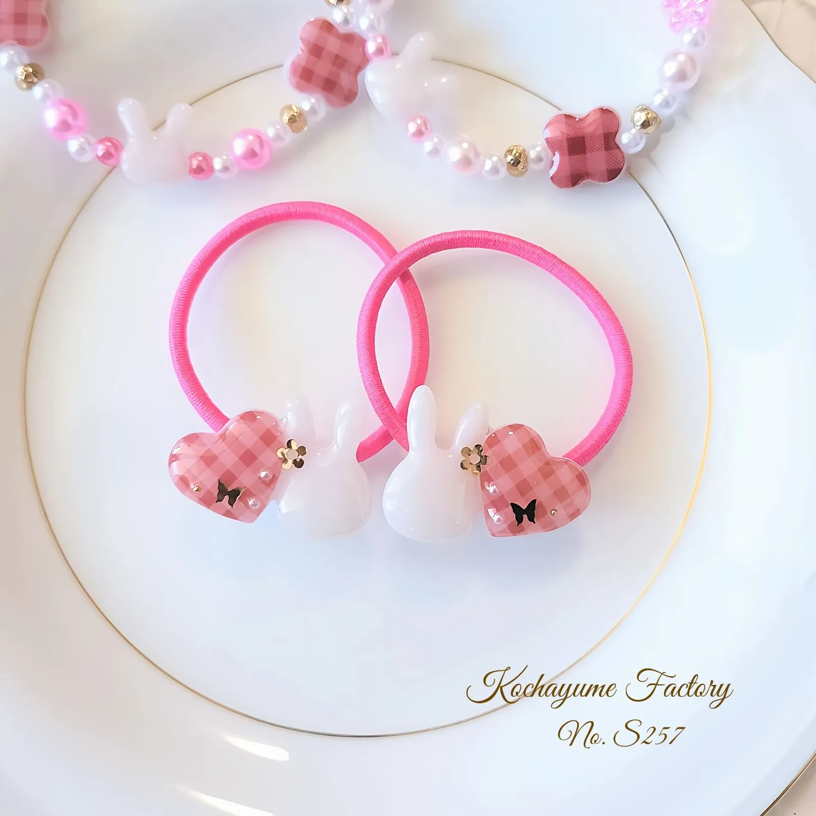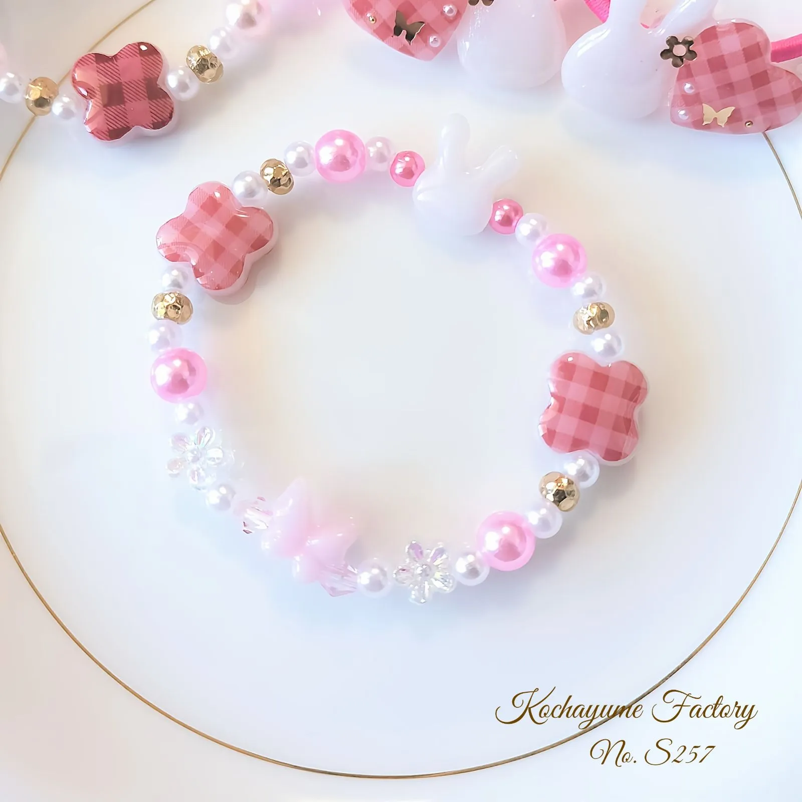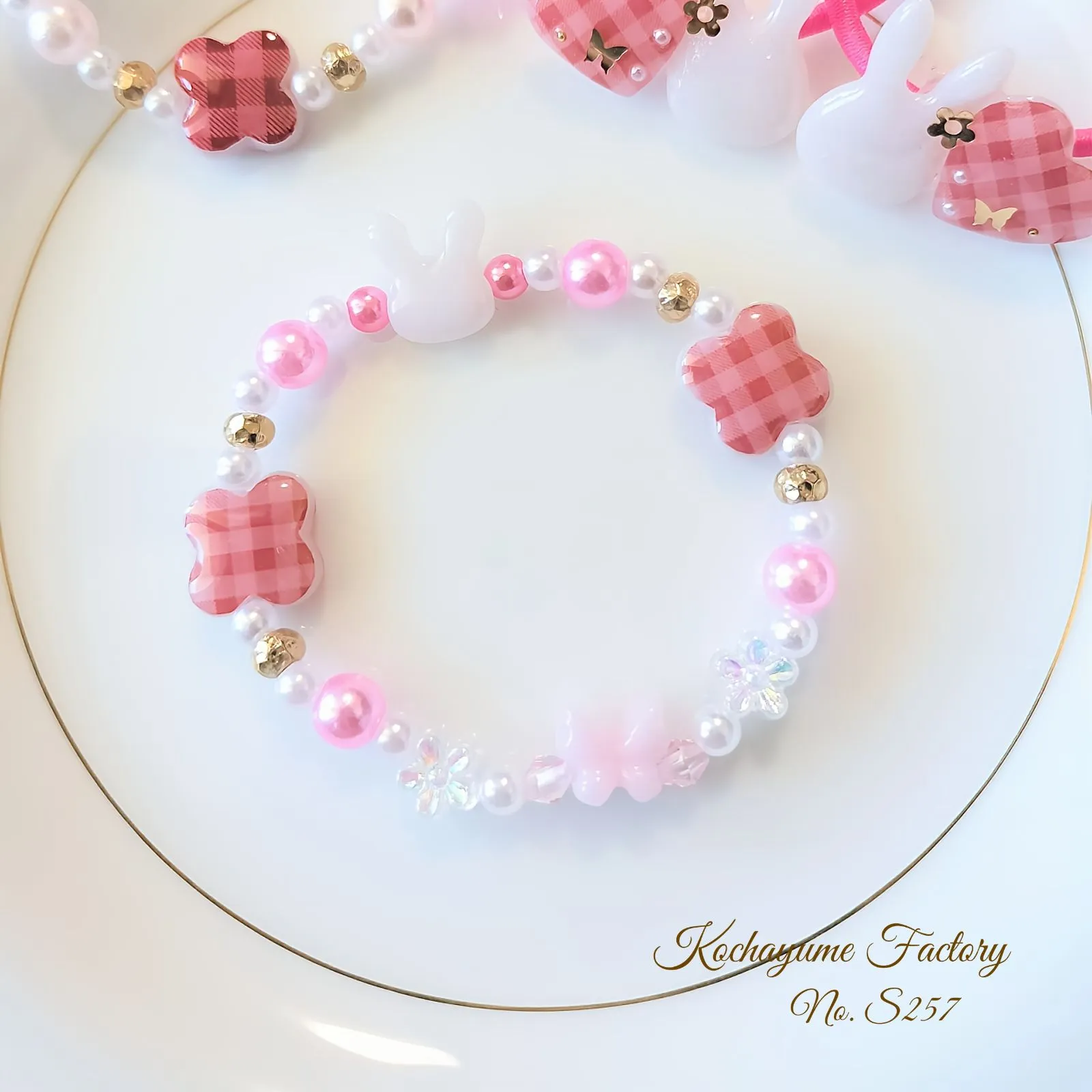 【S257】うさぎちゃんのチェック柄ヘアゴム&ブレスレット キッズアクセサリー キッズブレスレット ビーズブレスレット お花ブレスレット キッズヘアゴム うさぎヘアゴム お誕生日 プレゼント