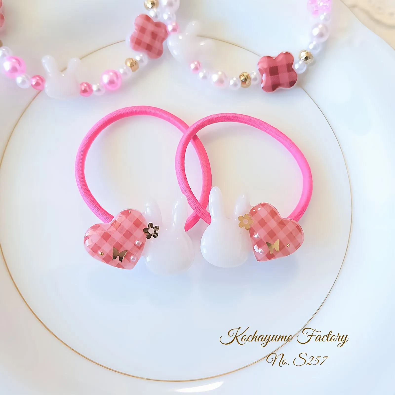 また、ブレスレットとお揃いでうさぎちゃんとハートのヘアゴムを作りました。