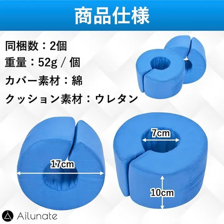 「サイズ」外径17cm x 内径7cm x 高さ10cm、重量:52g/個、カバー素材:綿、 クッション素材:ウレタン、個数:2個セット