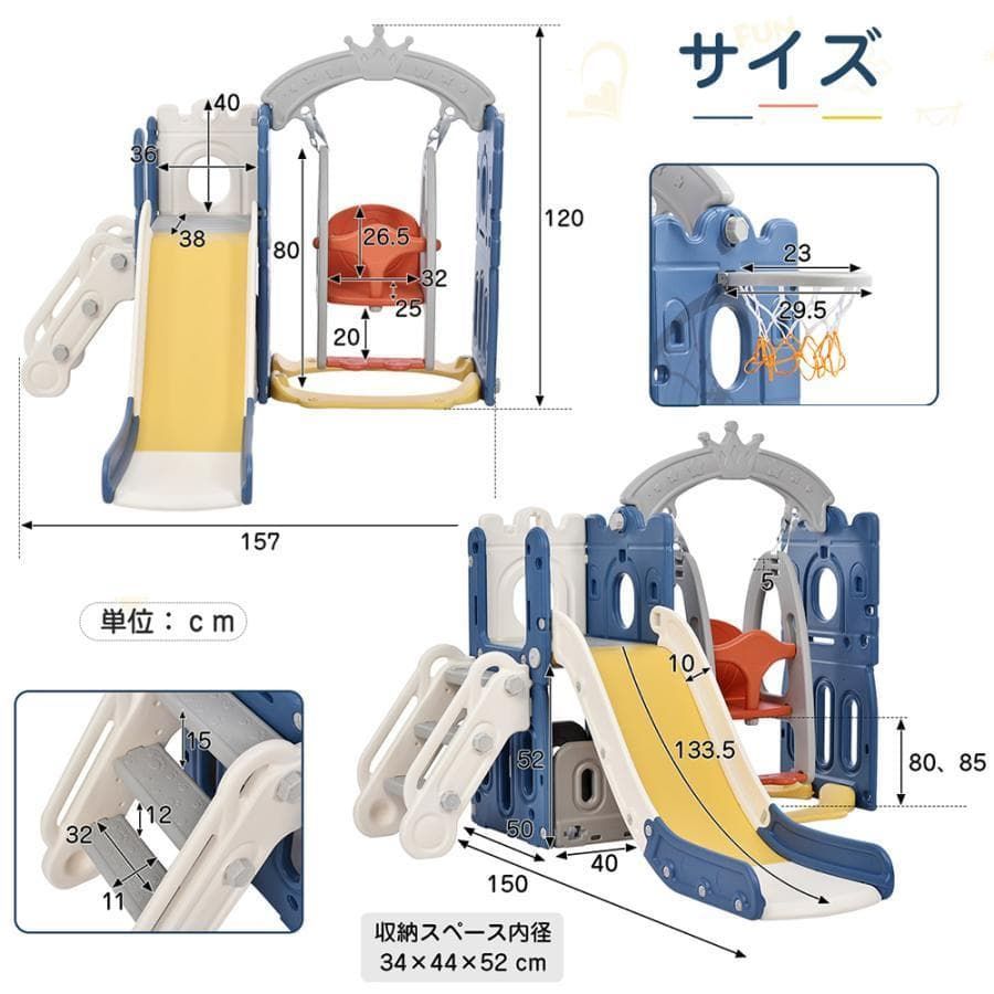 【商品名】:滑り台 大型遊具 4IN1 室内遊具 ブランコ スイング 収納スペース スライダー 子供 遊具 すべり台 キッズ 室内 屋内 キッズパーク バスケットゴール プレゼント