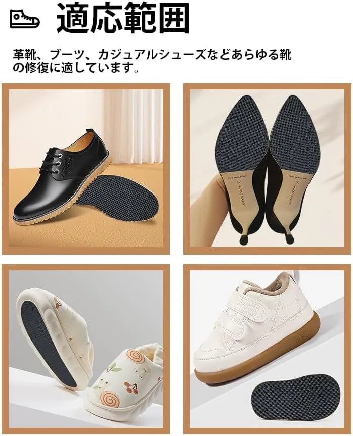汎用 シューズ補修ソール 靴底パッド ソール 滑り止め ゴムシート 各種靴に対応 ブラック 耐摩耗性 靴底修理 靴修理 補修用品 靴修理パッチ かかと補修 ヒール ピンヒール 革靴 運動靴 スニーカー
