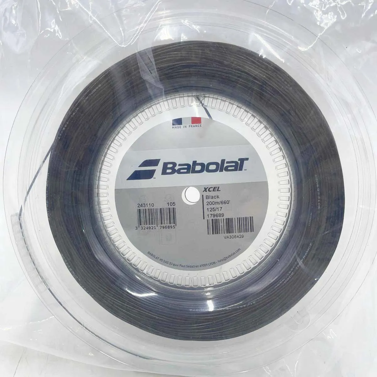 【未使用】バボラ XCEL エクセル 125 硬式 テニス ストリング ガット 200m ロール ブラック 243110 BABOLAT 1.25mm