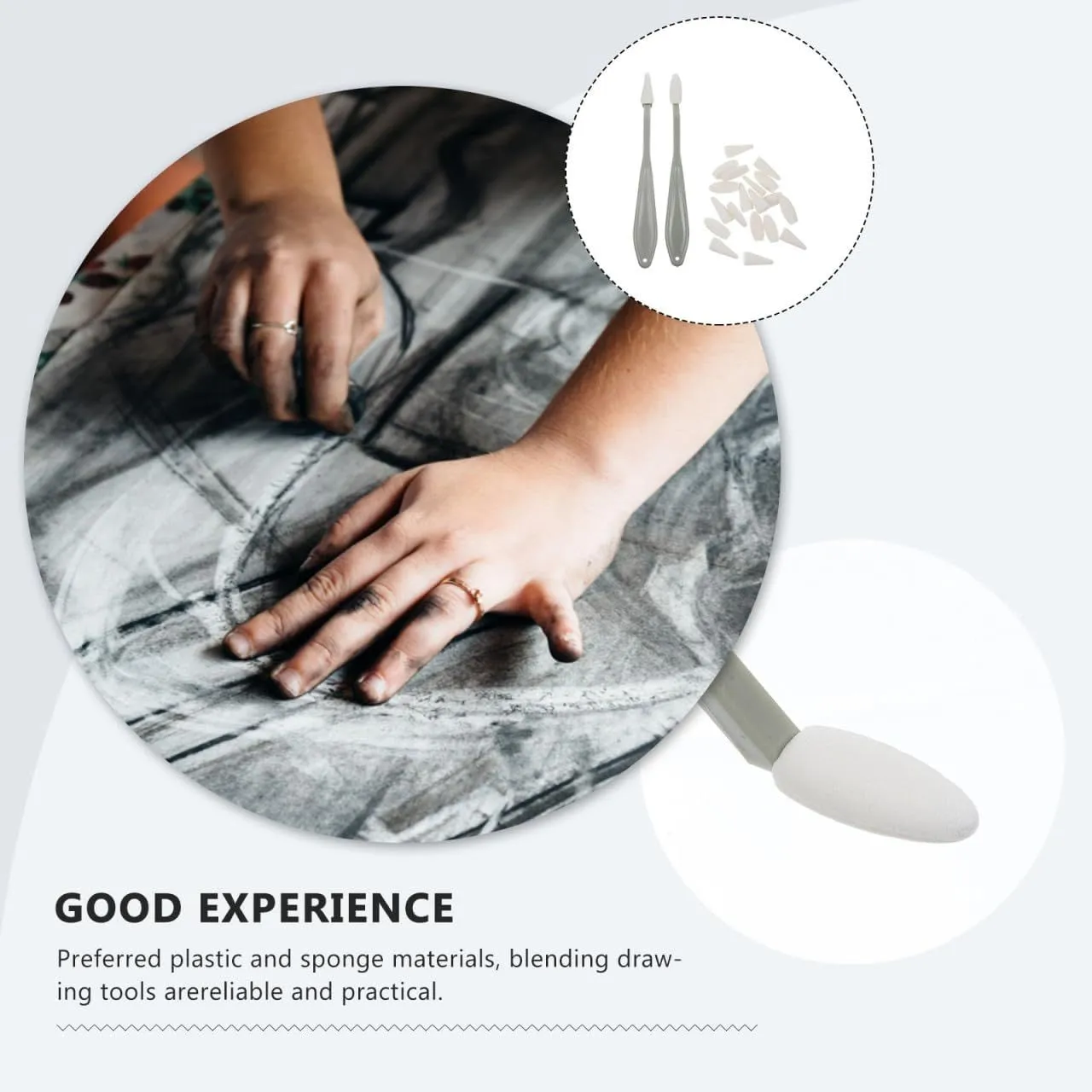 擦筆 デッサン さっぴつ スポンジ擦筆 2本 交換用スポンジ20個 美術学生 プロ用 スケッチ用品 鉛筆画 木炭画 コンテ画 パステル画 素描 美術 画材 1 セット アートプラグ b-111