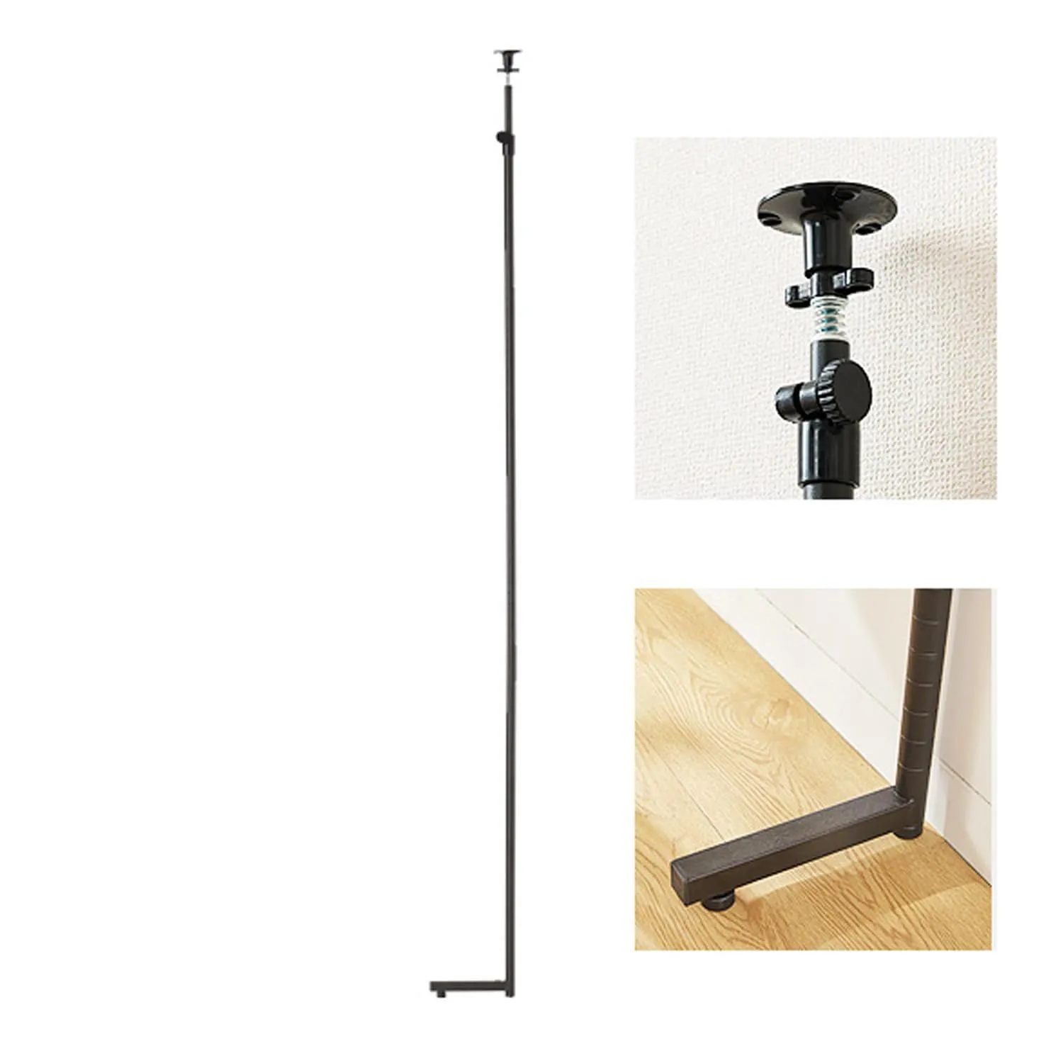 ドウシシャ ルミナス ノワール スチールラック 転倒防止パーツ L字脚 突っ張りポール 支柱 高さ220~280cm ポール径25mm アジャスター付き 壁面収納 diy 天井 強力 グラつき防止 地震対策 ウォールラック 黒 NO2228-1P