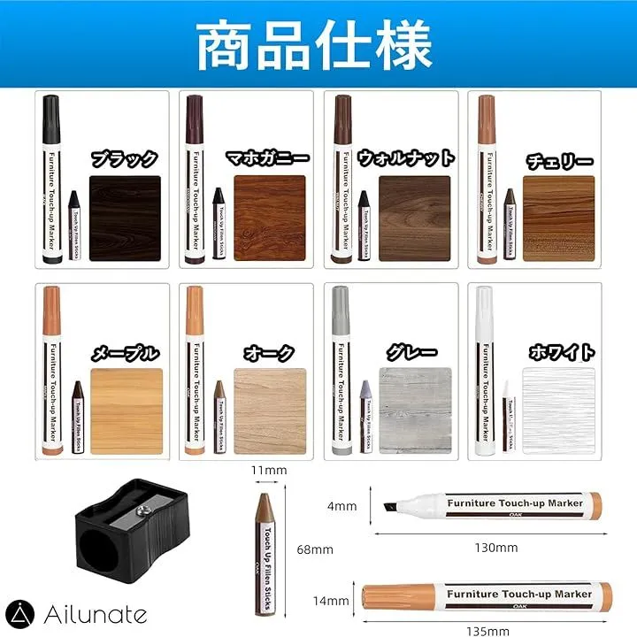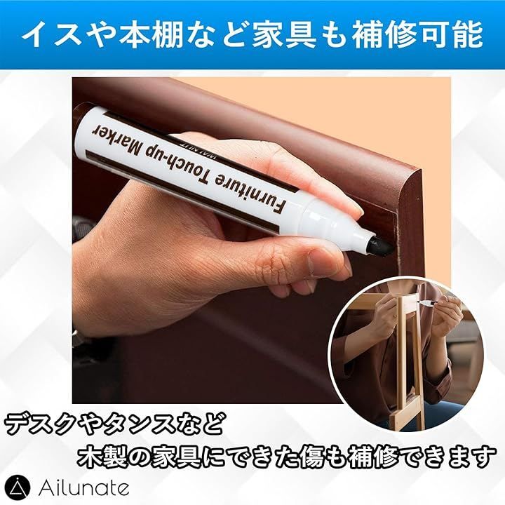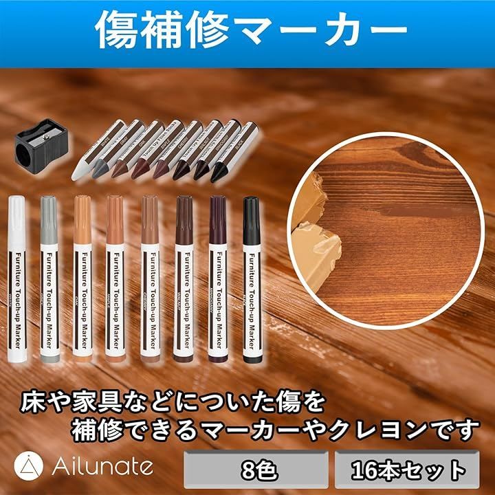 Ailunate フローリング 補修 傷 ペン マーカー 傷補修 床 キズ消し キズ隠し 補修ペン 木製家具 剥がれ 穴補修 8色入り 16本セット (マルチカラー)