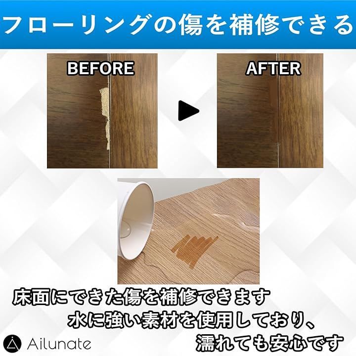 「フローリングや床材を補修できる」長く使っている家具や床に傷がついた時に専門業者に依頼せず、傷を補修できます。