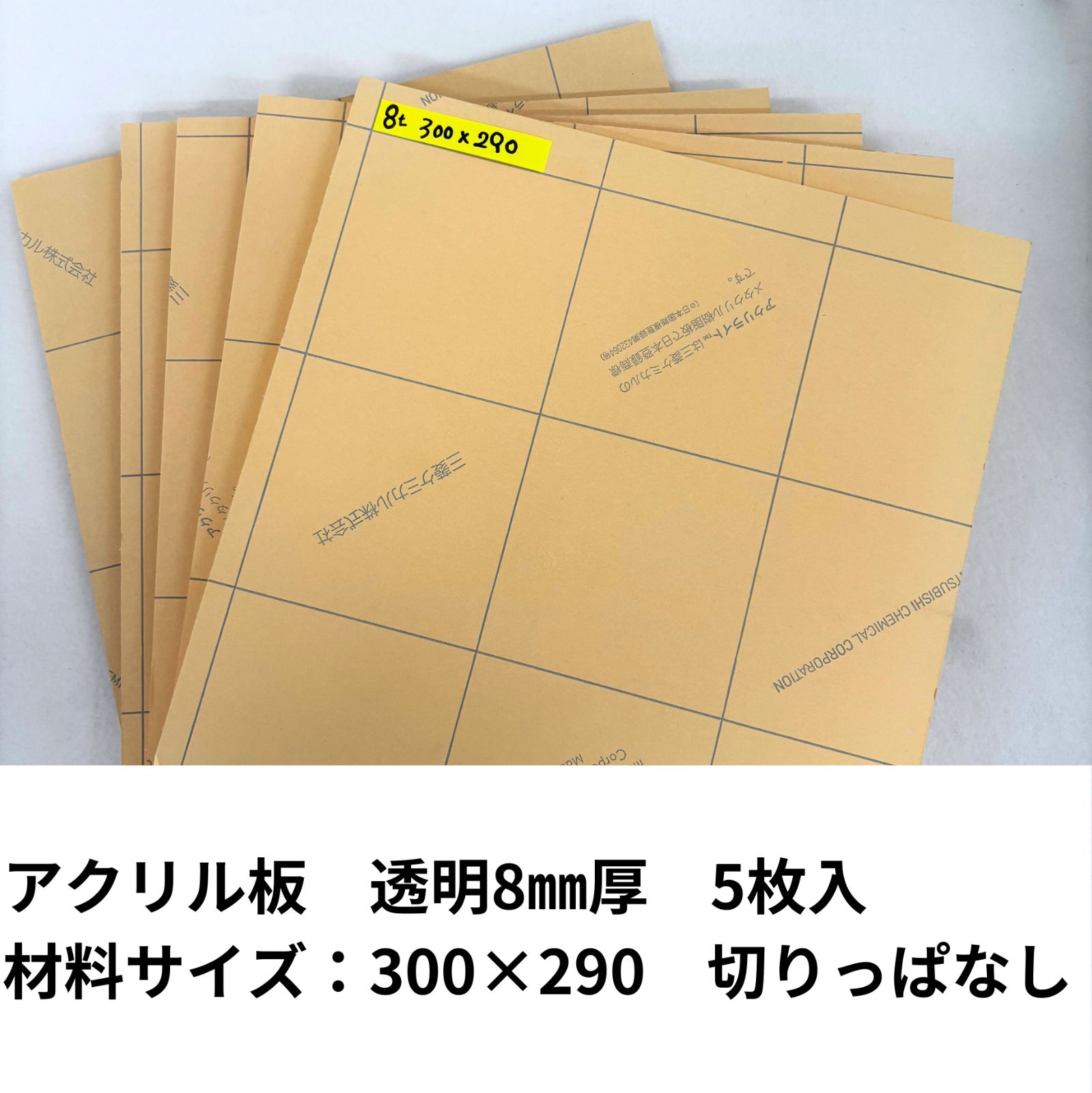 アクリル板8㎜ 透明5枚セット サイズ:300×290㎜ 三菱ケミカル アクリライト 001