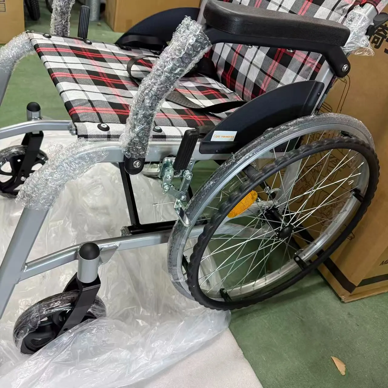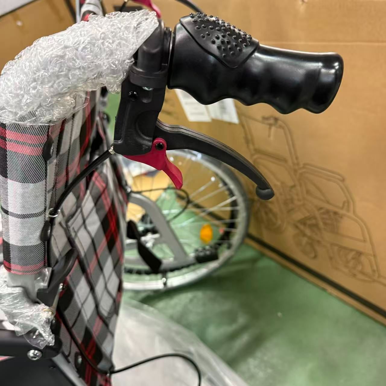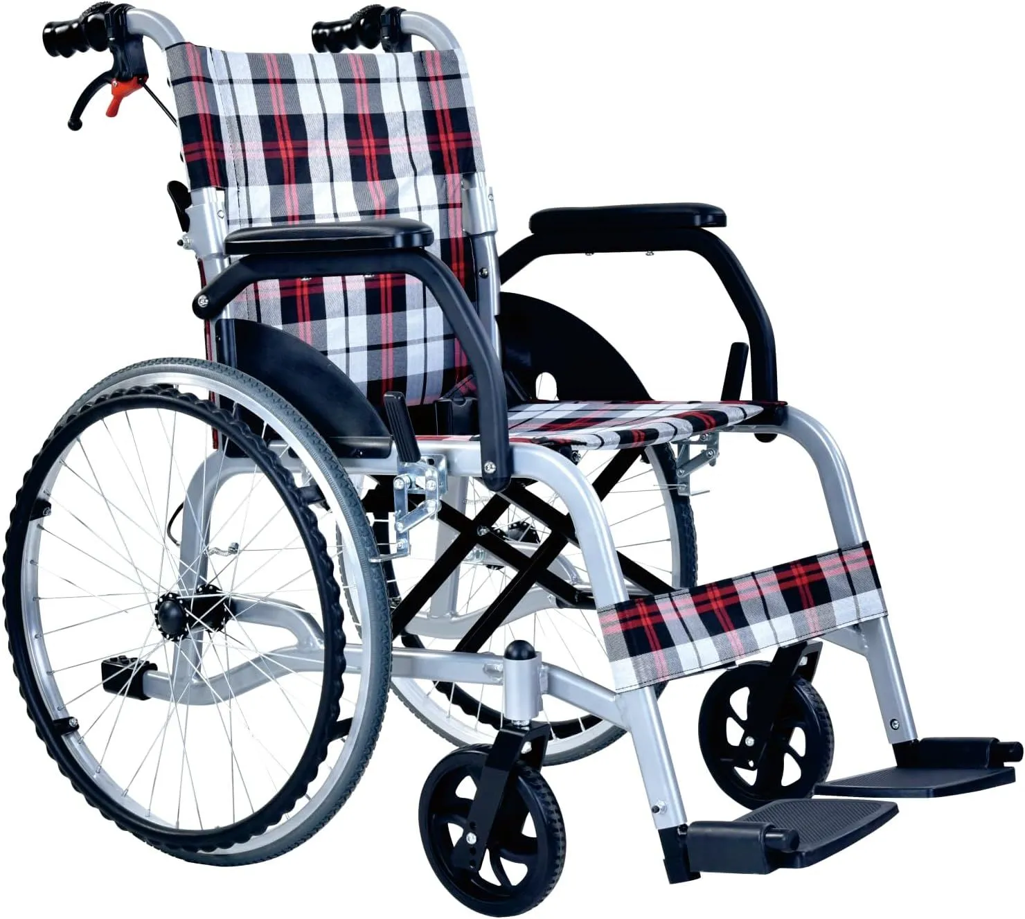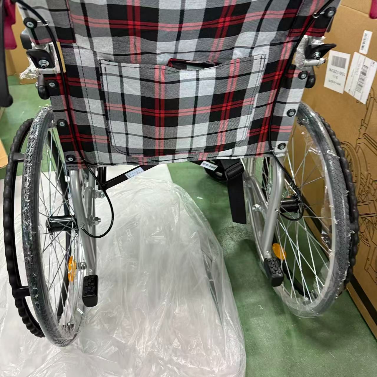 車椅子 自走式車いす アルミ製 折りたたみ 車イス 介助・自走 兼用 簡易 軽量車椅子 手押し 折り畳み 自宅でも外出でも コンパクト 背折れタイプ 車いす (CP-30A5N 赤&黒格子)