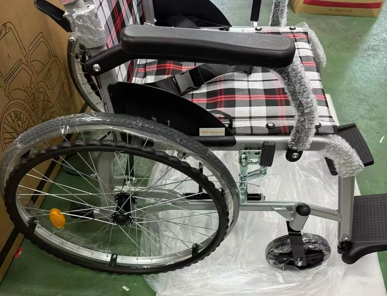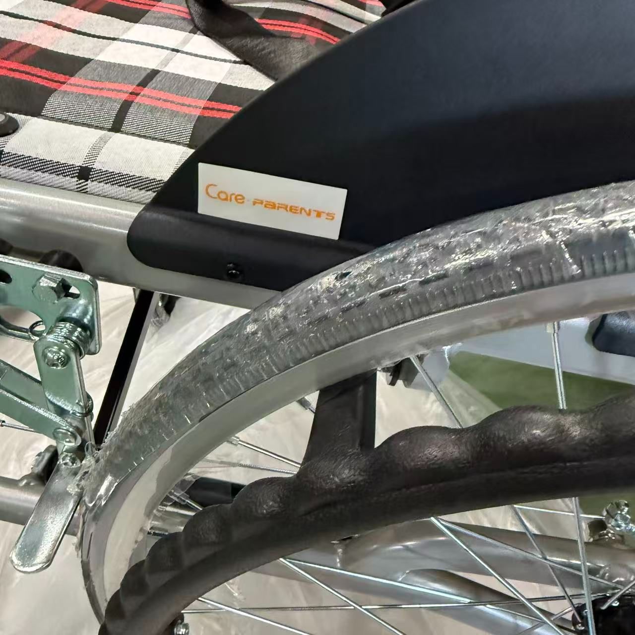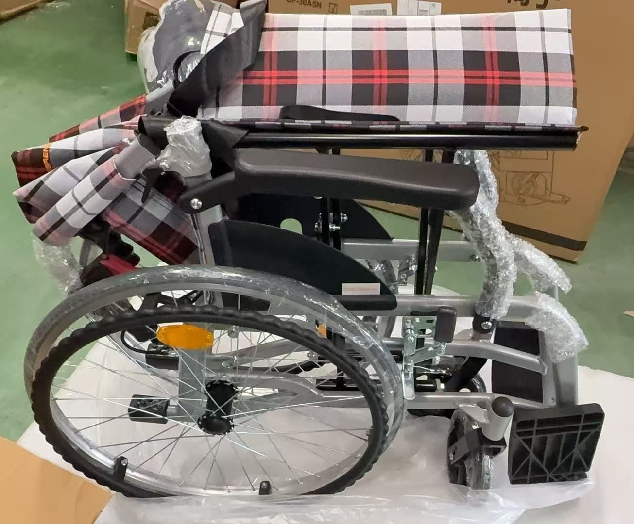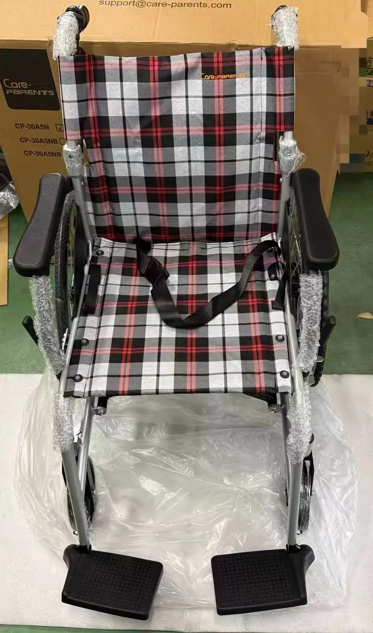 車椅子 自走式車いす アルミ製 折りたたみ 車イス 介助・自走 兼用 簡易 軽量車椅子 手押し 折り畳み 自宅でも外出でも コンパクト 背折れタイプ 車いす (CP-30A5N 赤&黒格子)