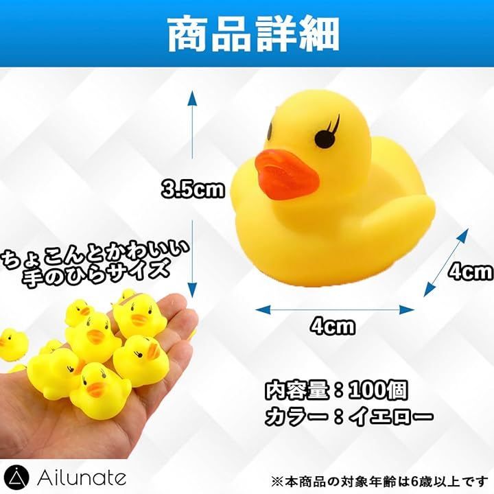 Ailunate アヒル お風呂 おもちゃ あひる ミニ 水遊び お風呂に浮かべるアヒル アヒルちゃん 大容量 (イエロー, 100個)