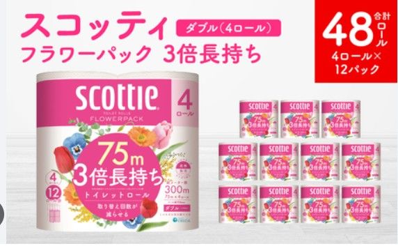 【12個】スコッティ フラワーパック 3倍長持ち トイレットペーパー ダブル ( 75m×4ロール ) 4020251107234