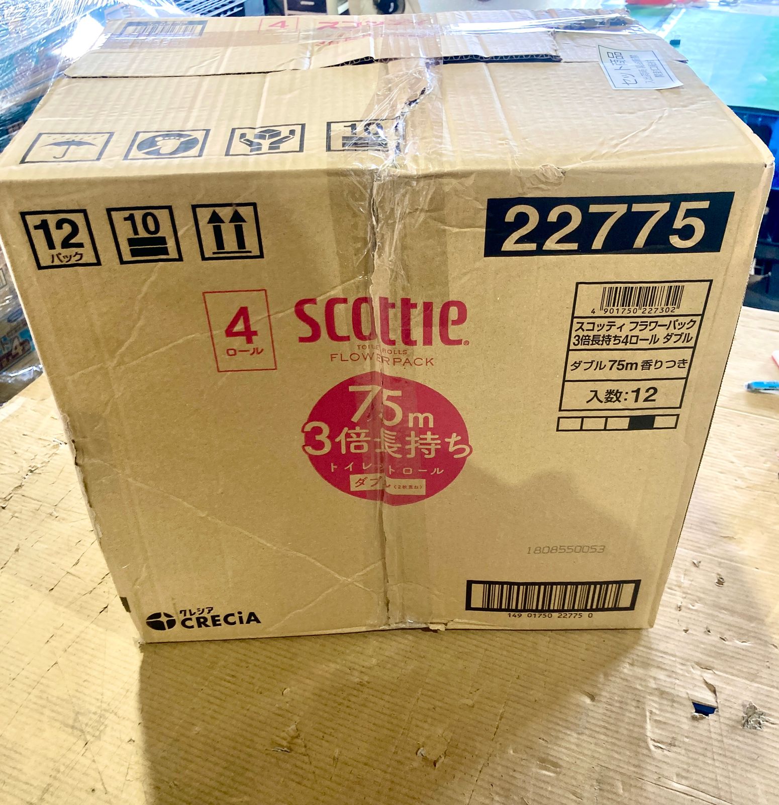 【新品・未開封品】【ケース販売】【12個】スコッティ フラワーパック 3倍長持ち トイレットペーパー ダブル ( 75m×4ロール )