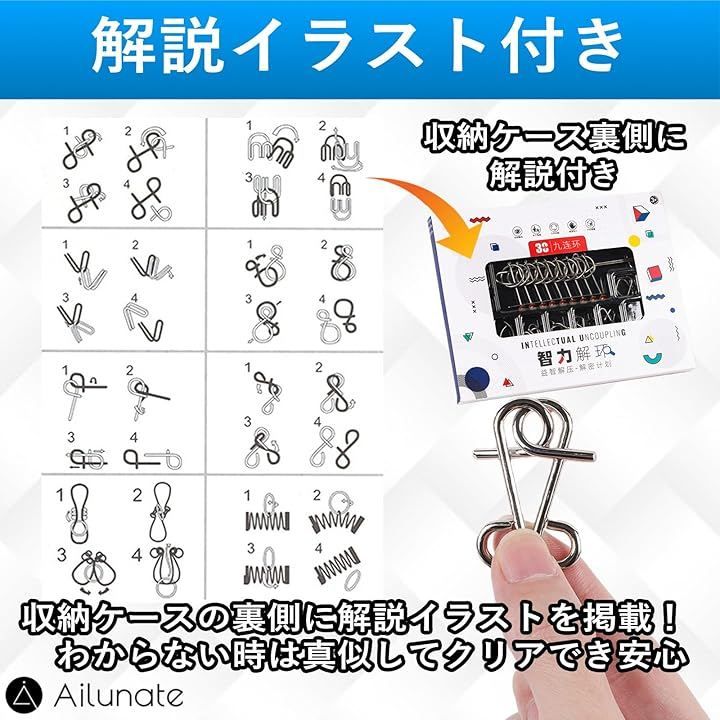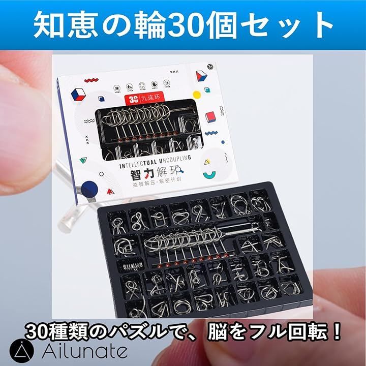 Ailunate 知恵の輪 大人 子供 セット 難しい パズル リング 脳トレ 金属 知育 玩具 30種類 クリスマス プレゼント