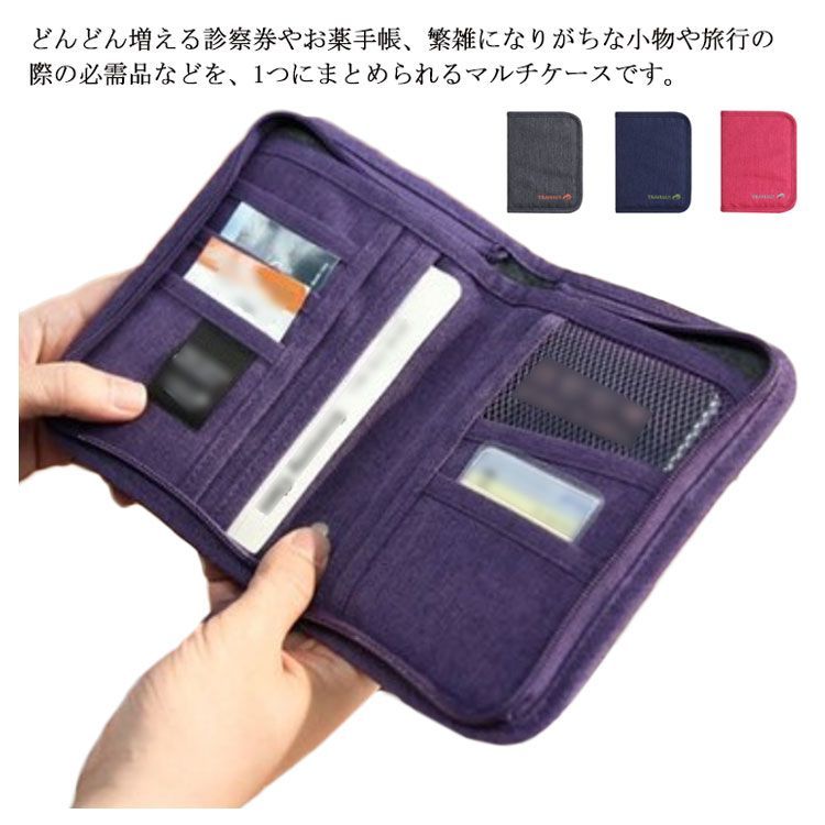 どんどん増える診察券やお薬手帳、繁雑になりがちな小物や旅行の際の必需品などを、1つにまとめられるマルチケースです。
