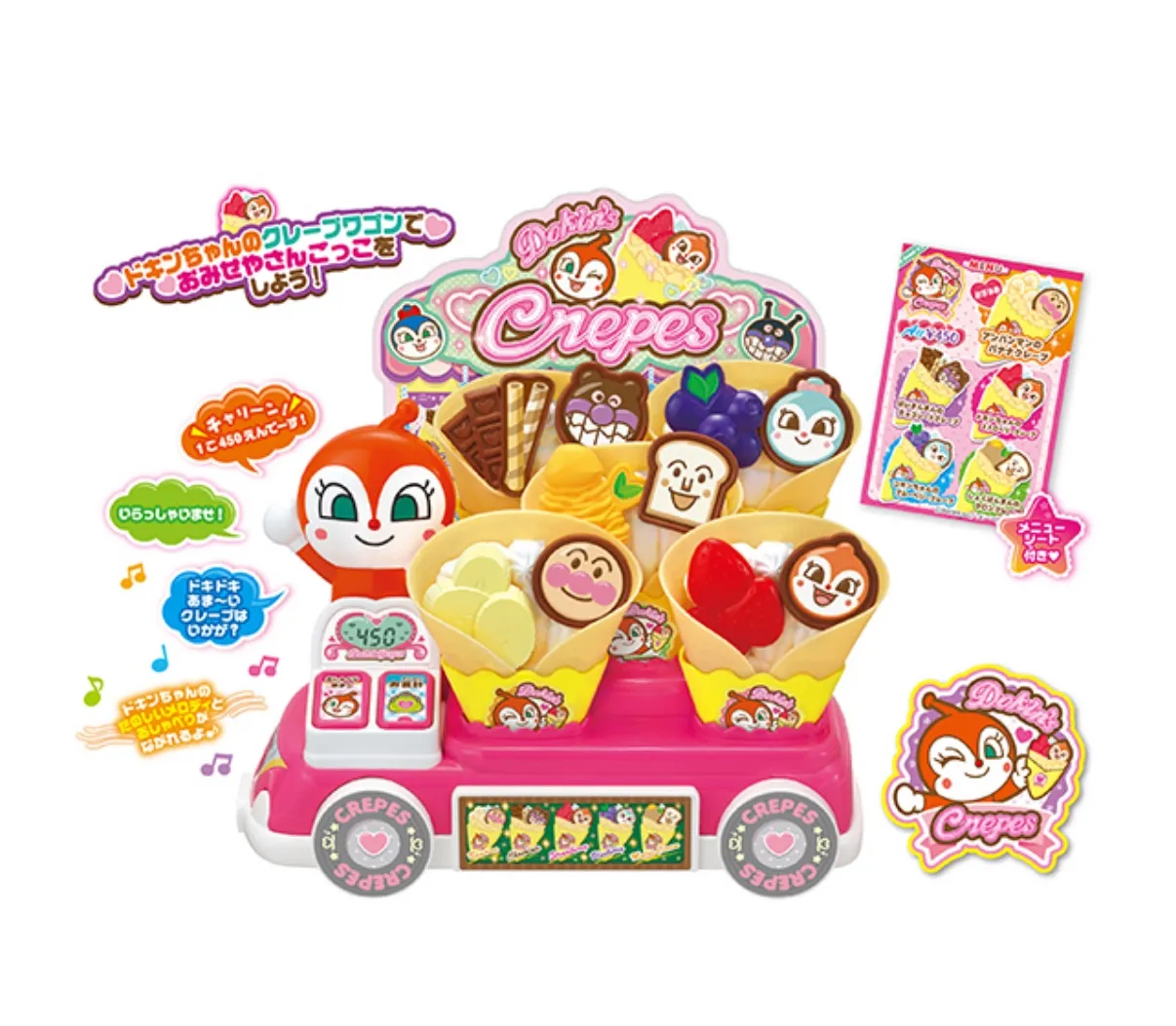 ドキンちゃんのワゴンショップで楽しくクレープ屋さんごっこ! 柔らかいクレープ生地で、くるっ♪と可愛いクレープをつくろう!