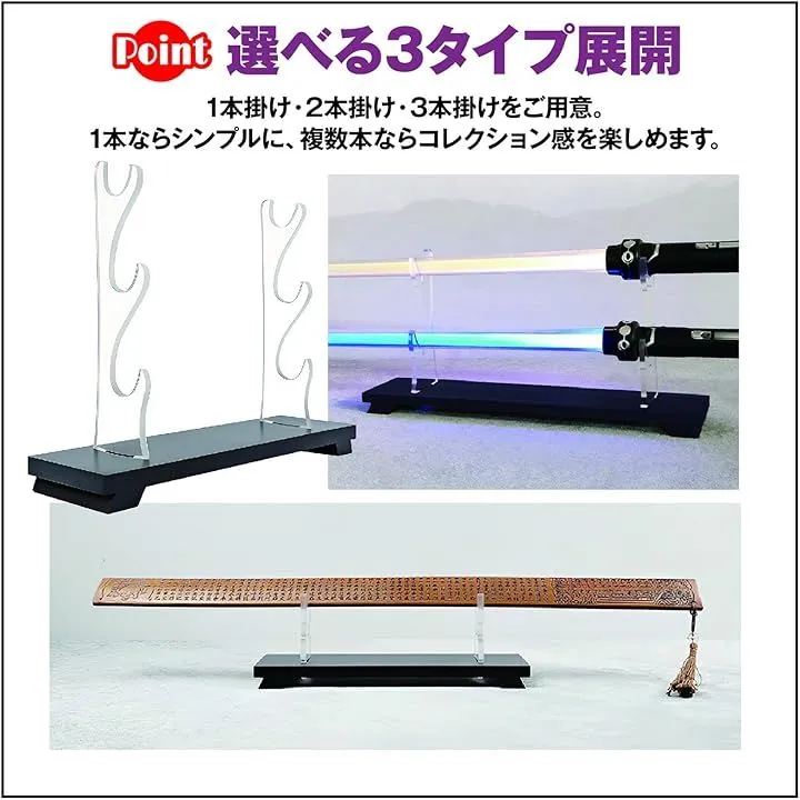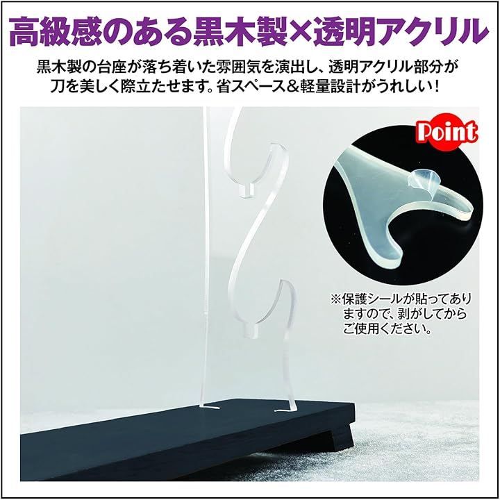 台座は黒の木製で高級感があり、刀を掛ける部分は透明感のあるアクリル製。