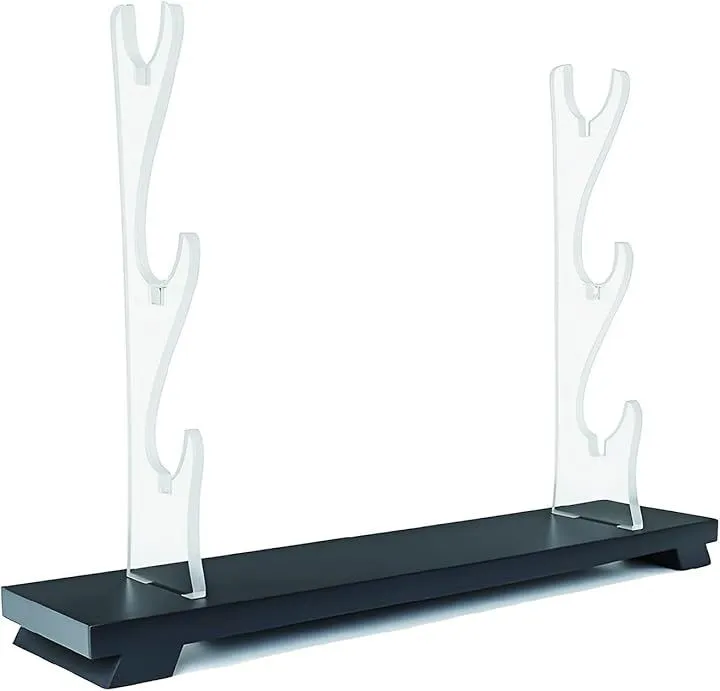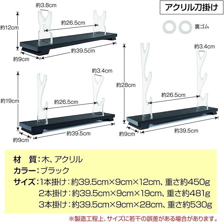 ZERONOWA 刀掛け 黒木製台座 アクリル 刀置き 日本刀 木刀 模造刀 小刀 クリア (ブラック3本掛け)