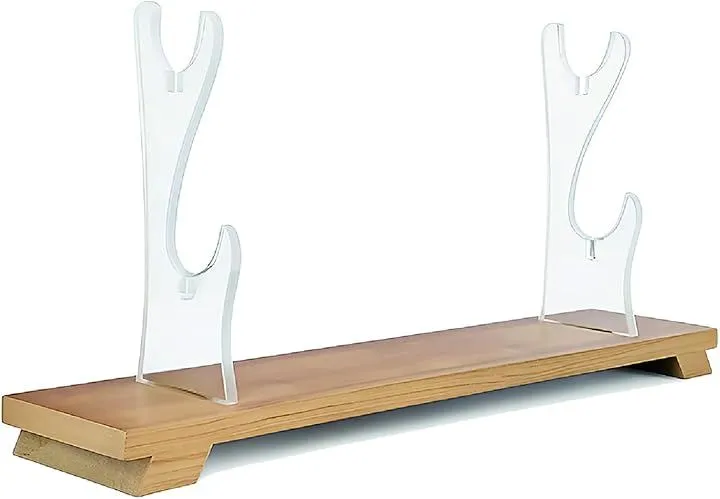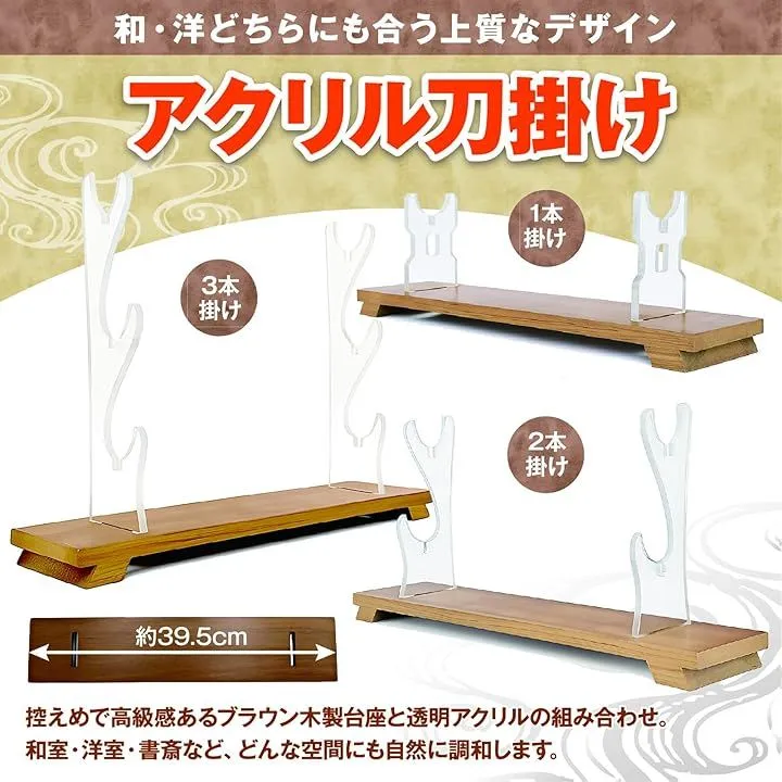 ZERONOWA 刀掛け ブラウン木製台座 透明アクリル 刀置き 日本刀 木刀 模造刀 小刀 横置き (ブラウン2本掛け)