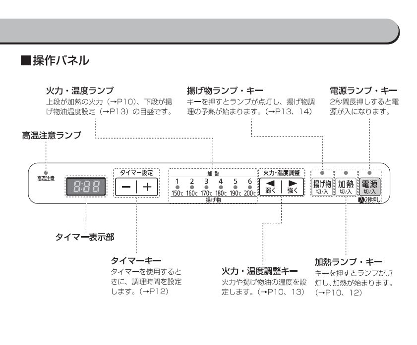火力調節 揚げ物調理:6段階(油温) 約150℃〜約200℃
