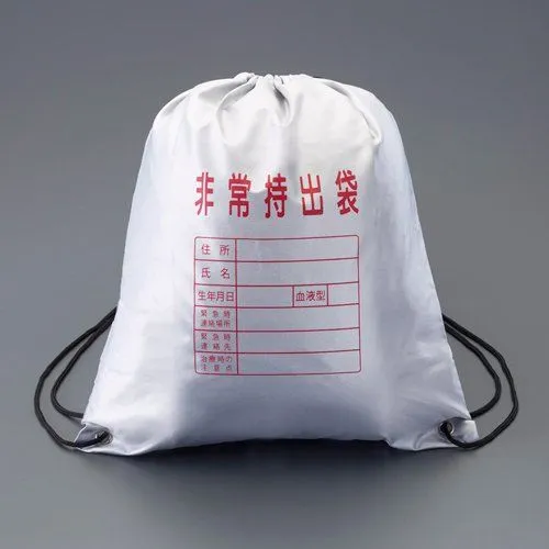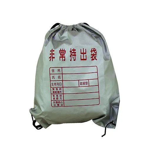 非常時に両手が使えるナップサック型の持ち出し袋です。