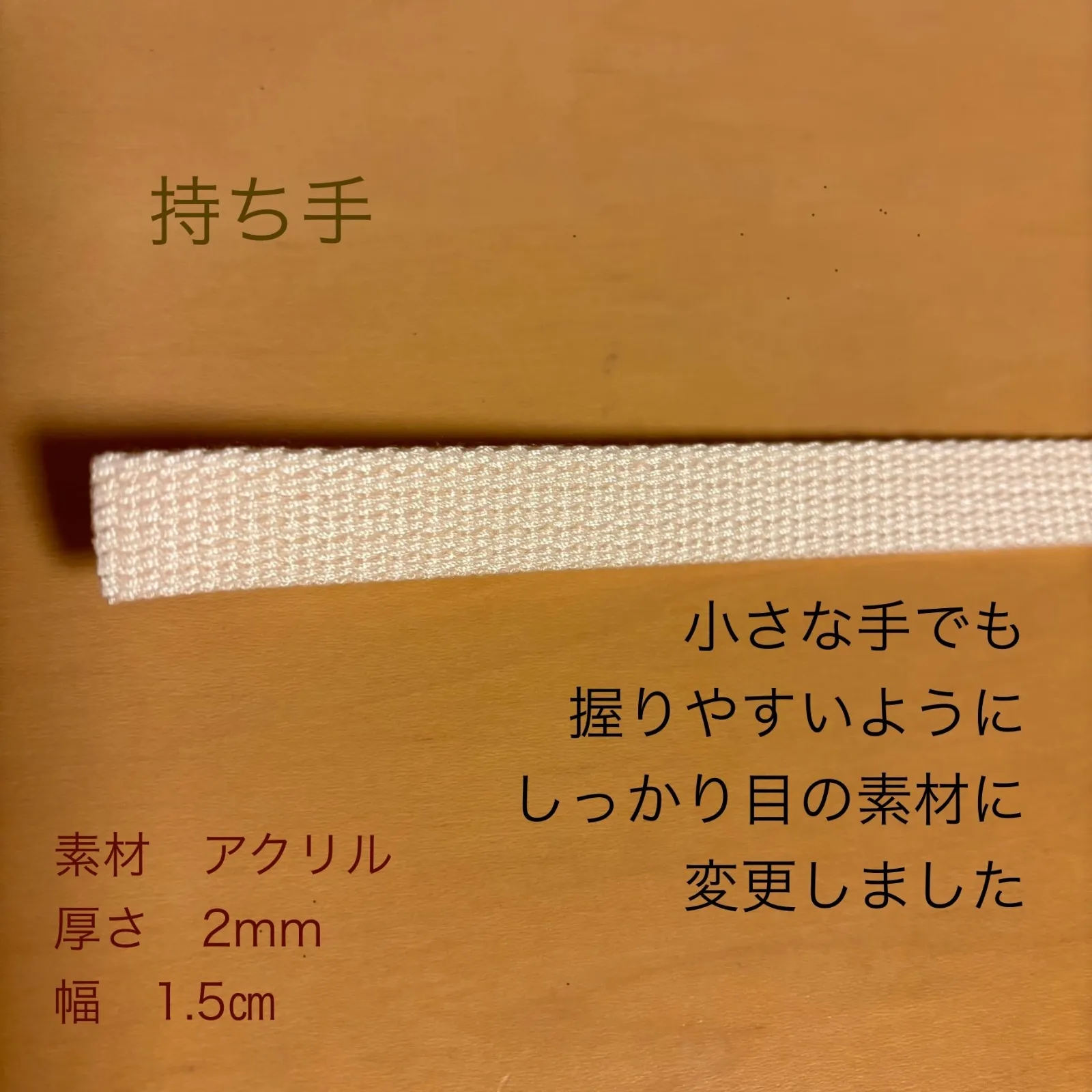 ○ 小さな手でも握りやすいように持ち手をしっかりめの素材に変更しました