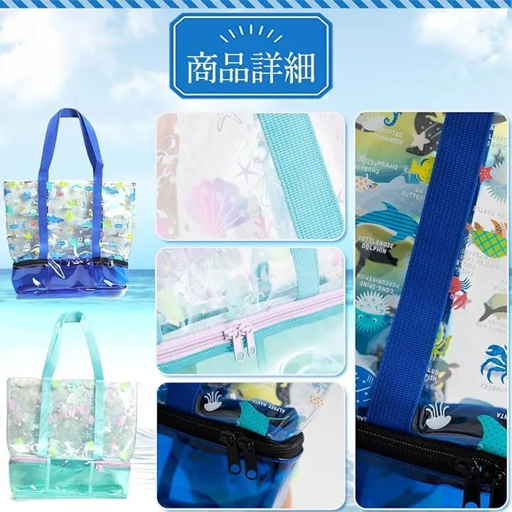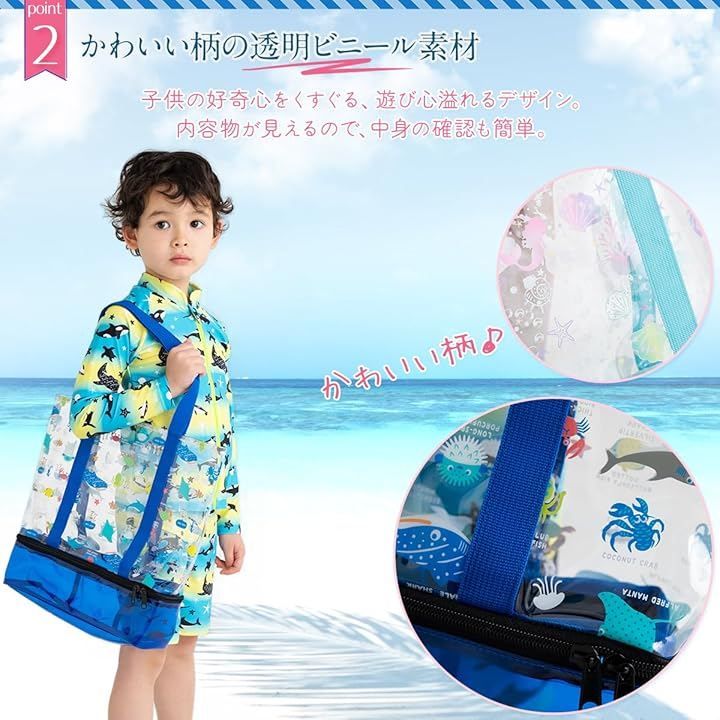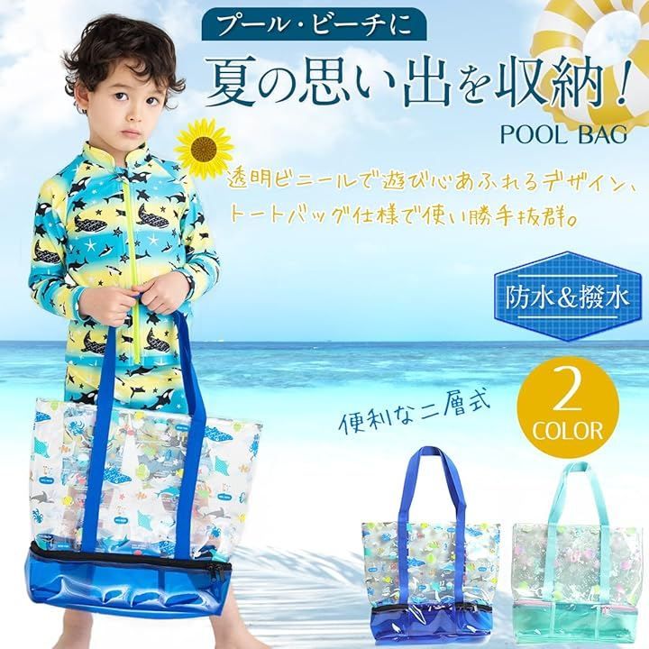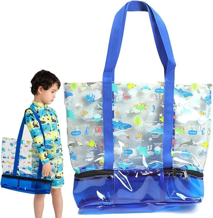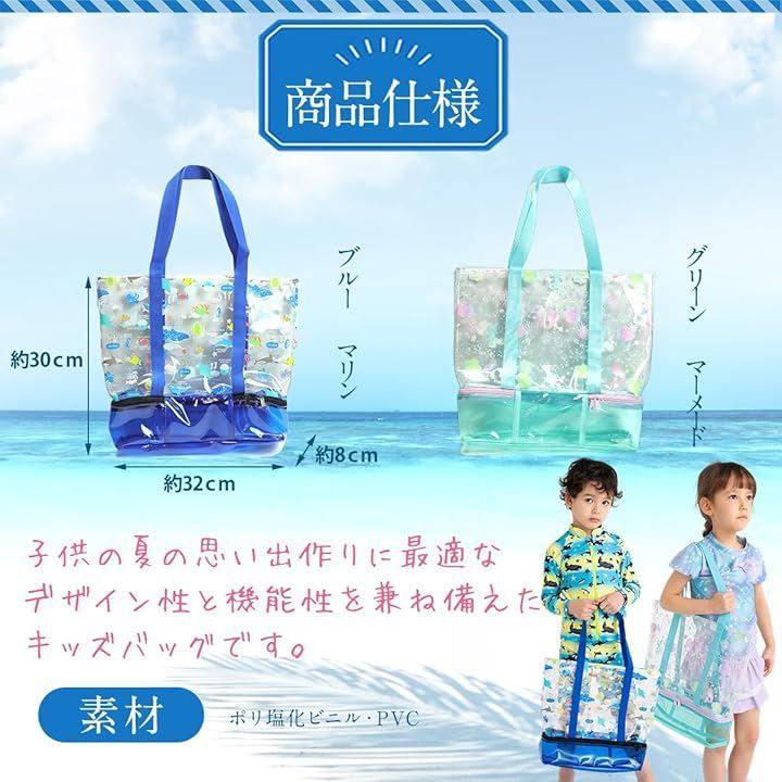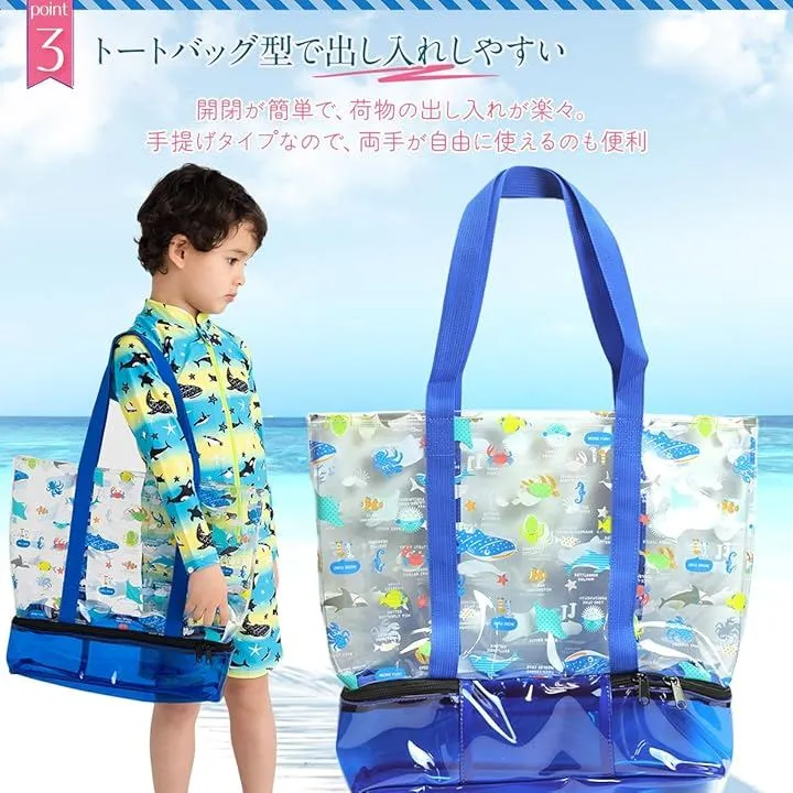 キャプテンK 2層式 プールバッグ スイムバッグ ビーチバッグ キッズ 子供 乾湿分離 スイミング 水泳 男の子 女の子 軽量 (ブルー マリン, 38cm x 32cm x 30cm)