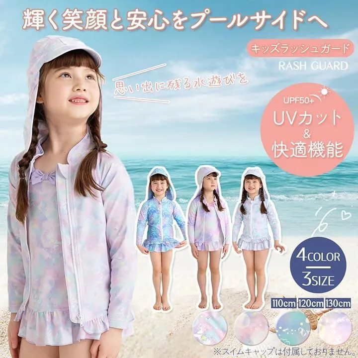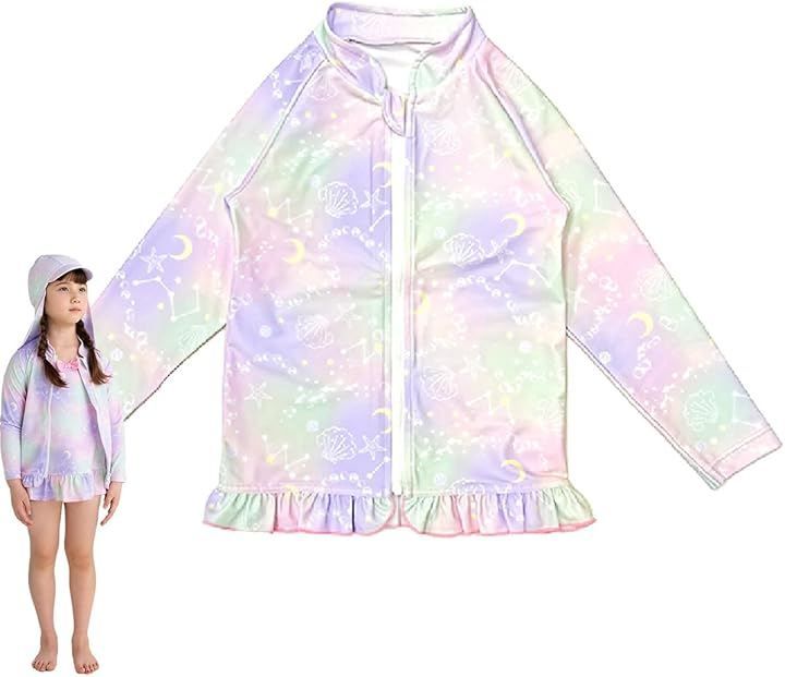 キャプテンK ラッシュガード 女の子 キッズ 子供 水着 UVカット 長袖 フリル ジップ ガールズ (ムーンライト パープル, 120)