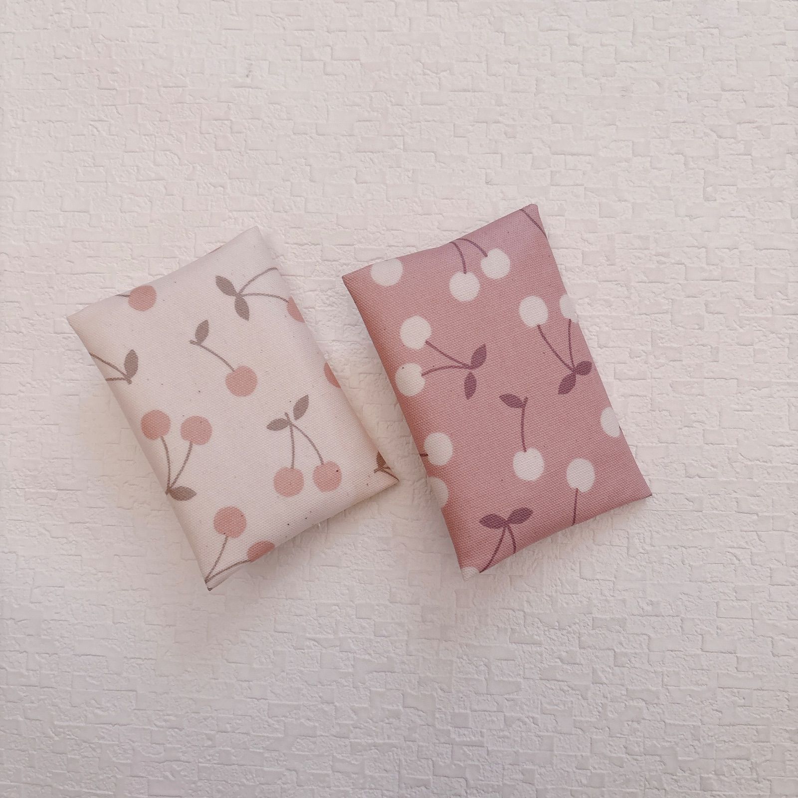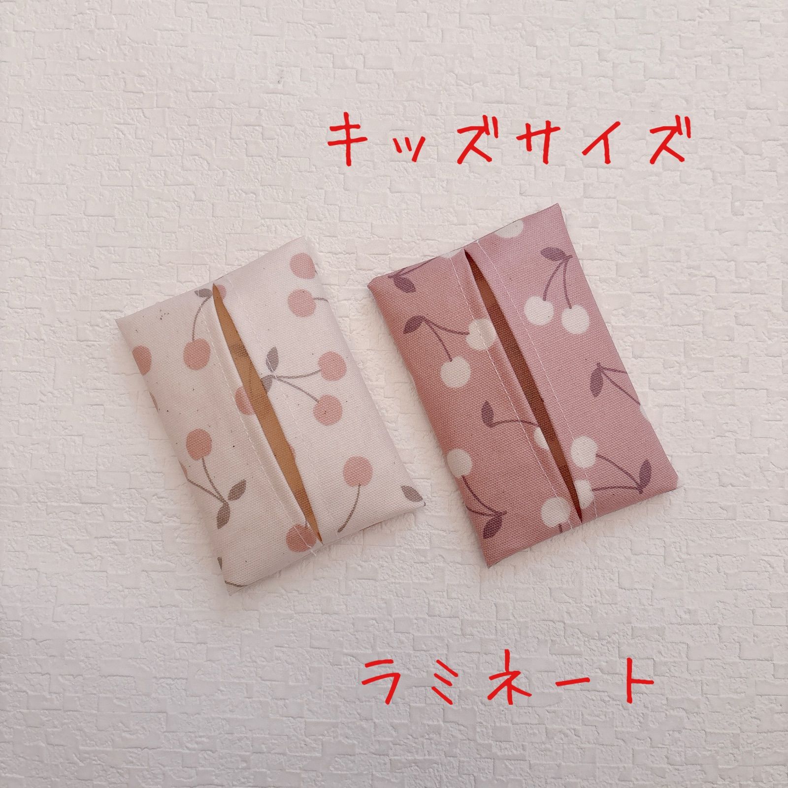 ラミネートキッズ ポケットティッシュケース くすみカラー さくらんぼ 白 ピンク