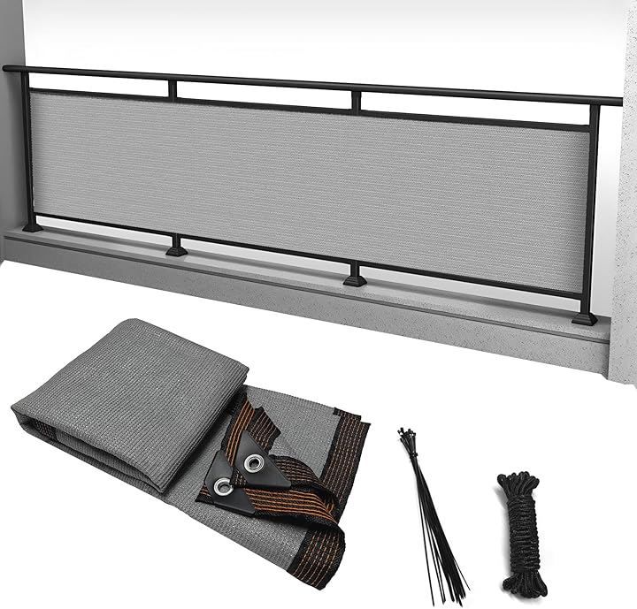 YEZOND ベランダ目隠し日除けシェード 遮光ネット バルコニー マンション UVカット 50CMごとに1つのロープ穴 (グレー, 1Mx2.5M)