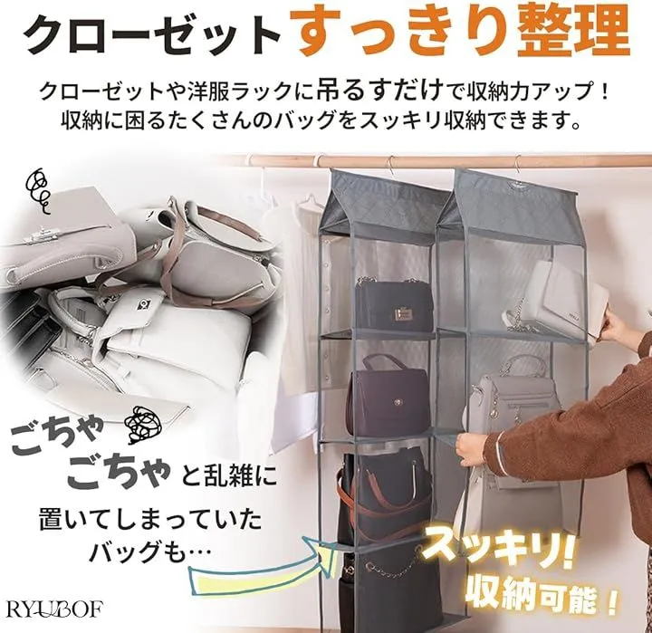 「クローゼットすっきり整理」 クローゼットや洋服ラックにxx吊るすだけで収納力アップ。xxハンドバッグやトート、リュックなどが散らかることなくスッキリ収納できます。