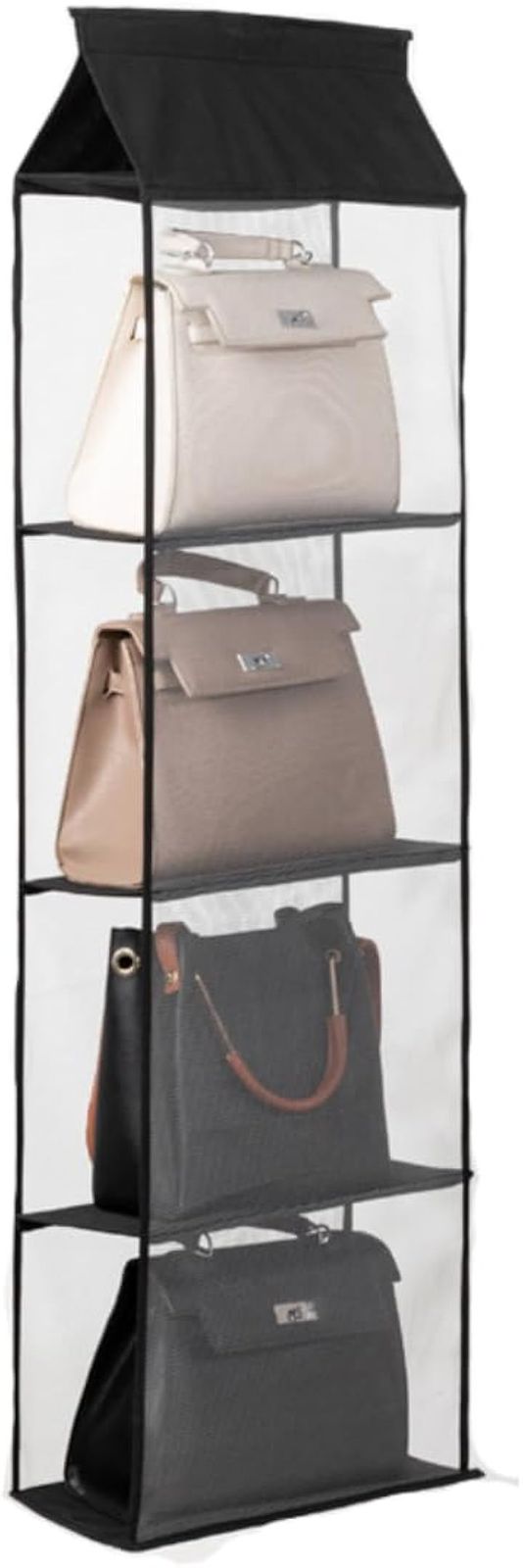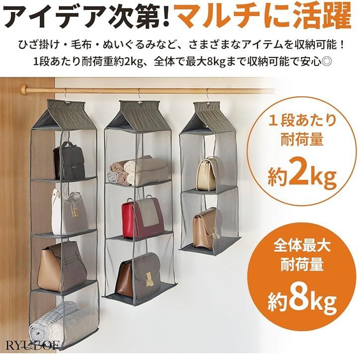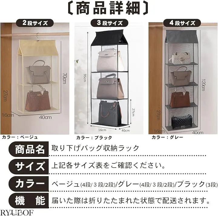 Ryubof カバン収納 バック収納 折りたたみ 収納ラック バッグ ハンガー 省スペース 取り付け簡単 防湿 クローゼット バッグハンガー (ブラック, 4段)