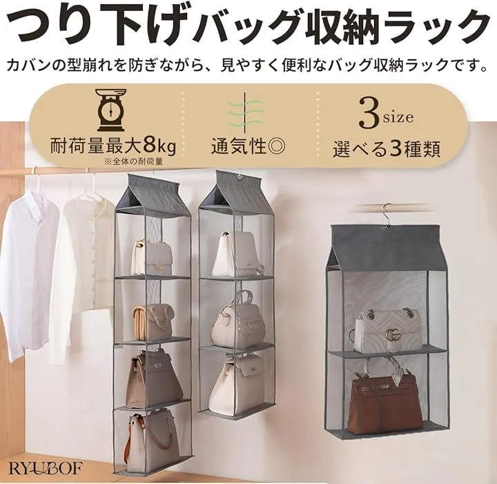 「選べるサイズ&しっかり収納」 吊り下げ式バッグ収納は、2段・3段・4段の3タイプ展開。