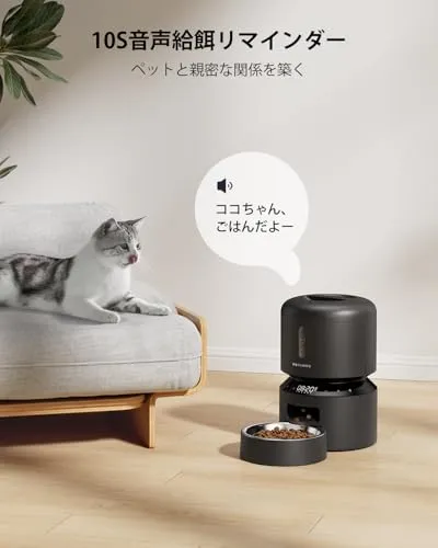 【新品】PETLIBRO 自動給餌器 猫 中小型犬用 定時定量 1日6食 自動餌やり機 4重鮮度保持 ツイストロック式蓋 水洗い可能 餌詰まり防止機能付き ステンレス製ボウル 手動給餌可 録音可 タイマー式 2WAY給電 日本語説明書付き 3L ブラック